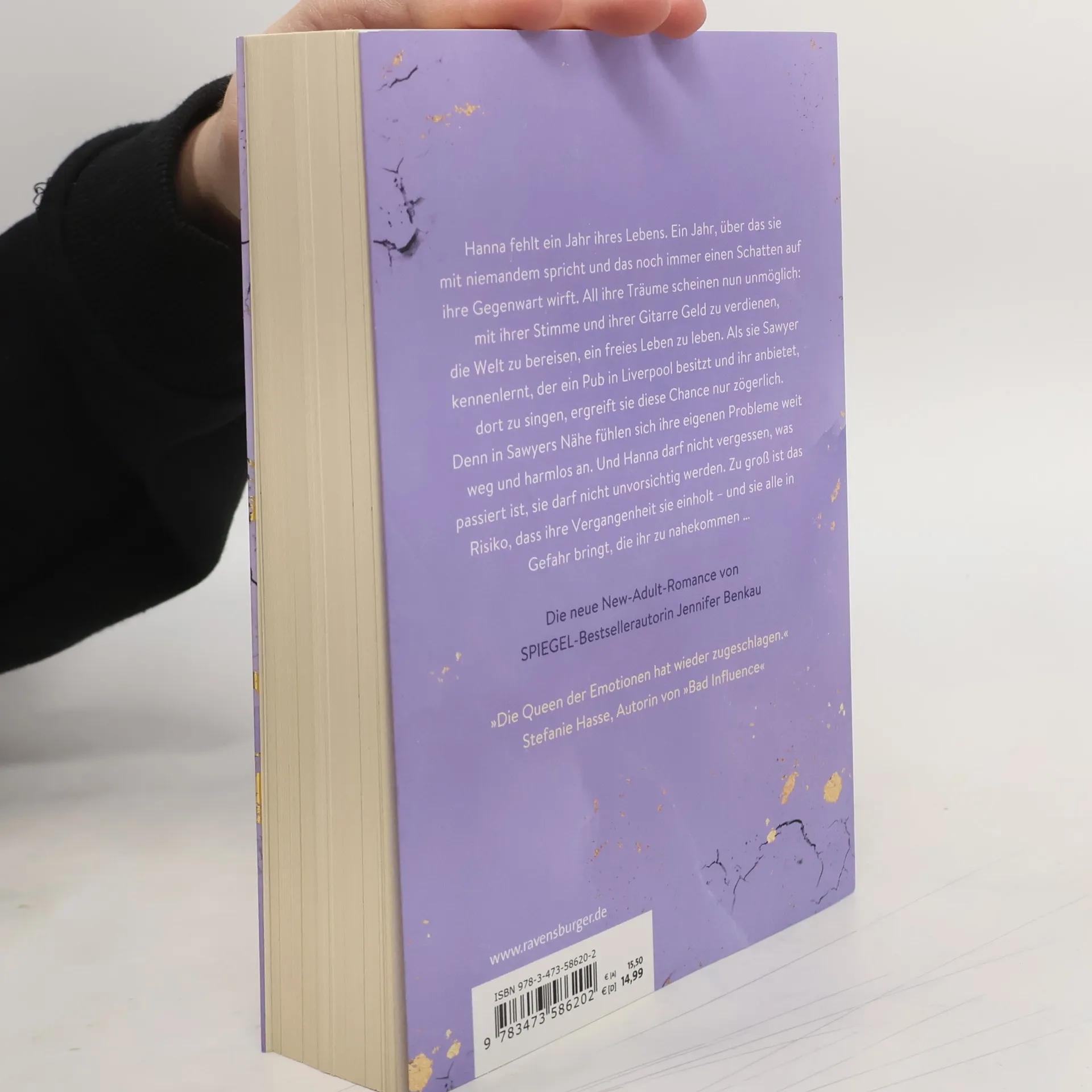 Hanna fehlt ein Jahr ihres Lebens, das noch immer einen Schatten auf ihre Gegenwart wirft. All ihre Träume scheinen unmöglich: mit ihrer Stimme Geld zu verdienen, zu reisen, ein freies Leben zu leben. Als sie Sawyer kennenlernt, der ein Pub in Liverpool besitzt und ihr anbietet, dort zu singen, ergreift sie diese Chance nur zögerlich. Denn in Sawyers Nähe fühlen sich ihre Probleme weit weg an. Und Hanna darf nicht unvorsichtig werden. Zu groß ist das Risiko, dass ihre Vergangenheit sie einholt … Intensive New-Adult-Romance von SPIEGEL-Bestsellerautorin Jennifer Benkau „Die Queen der Emotionen hat wieder zugeschlagen.“ Stefanie Hasse, Autorin von „Bad Influence“ Die komplette New-Adult-Reihe (die Bände können unabhängig voneinander gelesen werden): A Reason To Stay (Liverpool-Reihe 1) A Reason To Hope (Liverpool-Reihe 2) Jennifer Benkaus epische Romantasy-Reihen „One True Queen“, „Das Reich der Schatten“ und „The Lost Crown“ spielen in derselben Fantasy-Welt, können aber unabhängig voneinander gelesen werden. Sie sind in dieser Reihenfolge erschienen: One True Queen, Band 1: Von Sternen gekrönt One True Queen, Band 2: Aus Schatten geschmiedet Das Reich der Schatten, Band 1: Her Wish So Dark Das Reich der Schatten, Band 2: His Curse So Wild The Lost Crown, Band 1: Wer die Nacht malt The Lost Crown, Band 2: Wer das Schicksal zeichnet