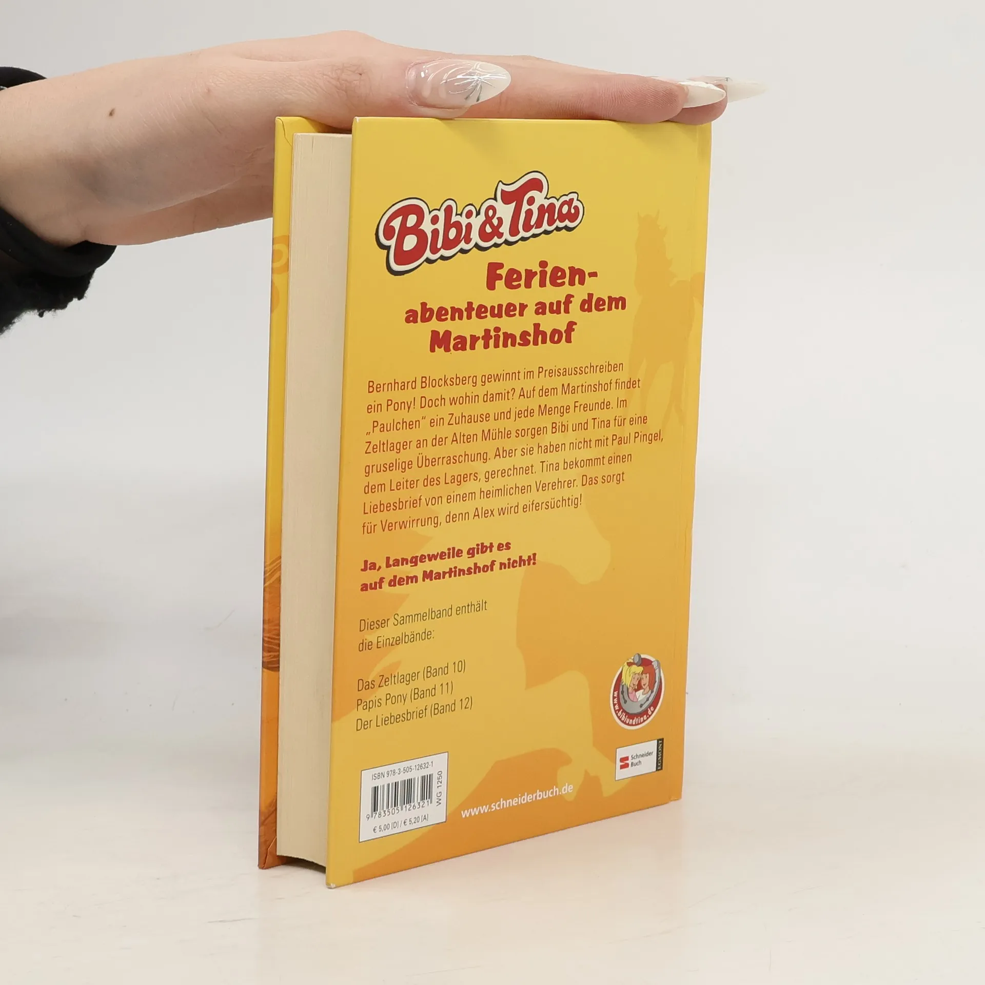Bernhard Blocksberg gewinnt im Preisausschreiben ein Pony! Doch wohin damit? Auf dem Martinshof findet „Paulchen“ ein Zuhause und jede Menge Freunde. Im Zeltlager an der Alten Mühle sorgen Bibi und Tina für eine gruselige Überraschung. Aber sie haben nicht mit Paul Pingel, dem Leiter des Lagers, gerechnet. Tina bekommt einen Liebesbrief von einem heimlichen Verehrer. Das sorgt für Verwirrung, denn Alex wird eifersüchtig! Dieser HIT enthält die Einzelbände: Das Zeltlager (Band 10), Papis Pony (Band 11), Der Liebesbrief (Band 12).