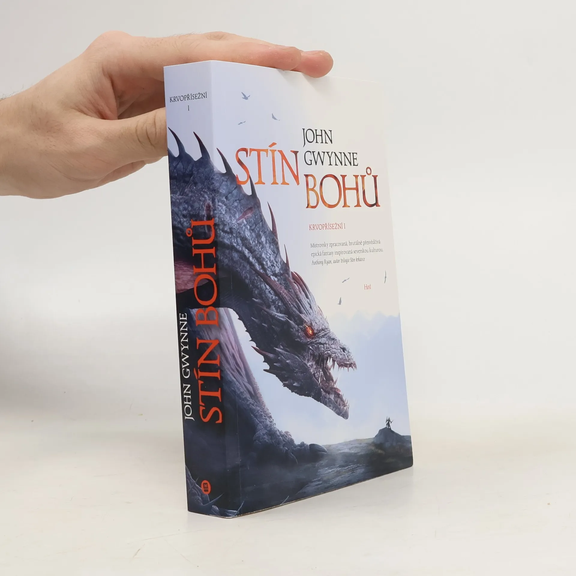 Úvodní díl epické fantasy ságy anglického autora, která je zasazena do severského světa plného mýtů a magie. Uplynula celá staletí od doby, kdy spolu bohové bojovali a navzájem se vyhubili. Zůstaly pouze jejich kosti, slibující velkou moc těm, kdo jsou dost stateční, aby se je vydali hledat. Vigrídem se šíří zvěsti o válce a příběh sleduje kroky tří bojovníků: lovkyně na nebezpečné výpravě, bojovnice z rodu mocného jarla toužící po bitevní slávě a otroka, který usiluje o pomstu mezi žoldnéři známými jako Krvopřísežní. Všichni tři budou utvářet osud světa, když na něj opět padne stín bohů. Nakladatelská anotace. Kráceno.