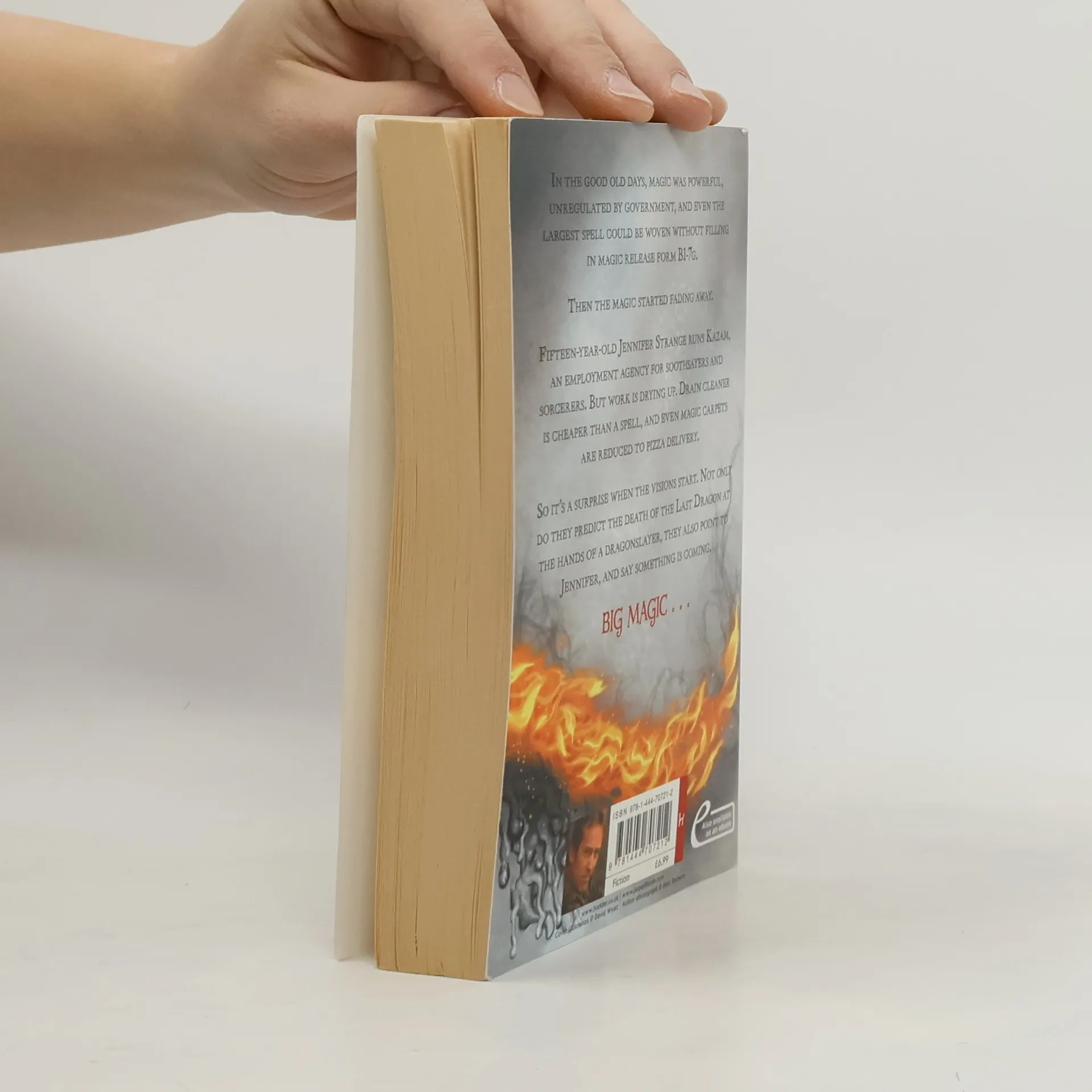 In the good old days, magic was powerful, unregulated by government, and even the largest spell could be woven without filling in magic release form B1-7g. Then the magic started fading away. Fifteen-year-old Jennifer Strange runs Kazam!, an employment agency for soothsayers and sorcerers. But work is drying up. Drain cleaner is cheaper than a spell, and even magic carpets are reduced to pizza delivery. So it's a surprise when the visions start. Not only do they predict the death of the Last Dragon at the hands of a dragonslayer, they also point to Jennifer, and say something is coming. Big Magic . . .