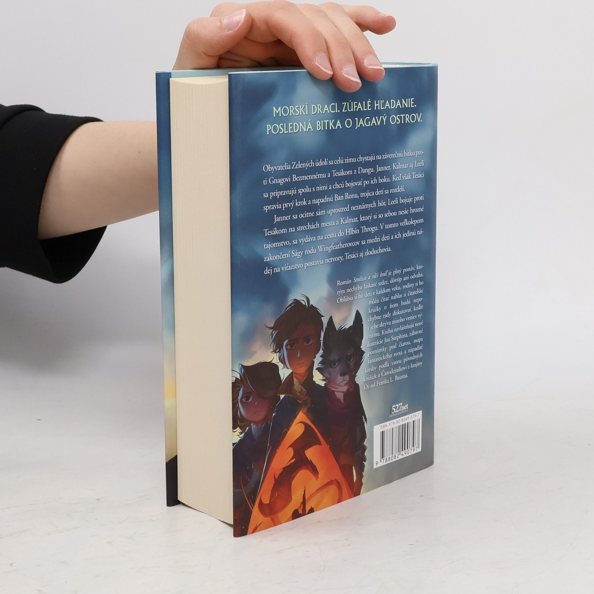 Obyvatelia Zelených údolí sa celú zimu chystajú na záverečnú bitku proti Gnagovi Bezmennému a Tesákom z Dangu. Janner, Kalmar aj Leeli sa pripravujú spolu s nimi a chcú bojovať po ich boku. Keď však Tesáci spravia prvý krok a napadnú Ban Ronu, trojica detí sa rozdelí. Janner sa ocitne sámuprostred neznámych hôr, Leeli bojuje proti Tesákom na strechách mesta a Kalmar, ktorý si so sebou nesie hrozné tajomstvo, sa vydáva na cestu do Hlbín Throgu. V tomto veľkolepom zakončení Ságy rodu Wingfeatherovcov sa medzi deti a ich jedinú nádej na víťazstvo postavia netvory, Tesáci aj zloduchovia. Román Strážca a vlčí kráľ je plný postáv, ktorým nechýba láskavé srdce, dôvtip ani odvaha. Obľúbia si ho deti v každom veku, rodiny si ho môžu čítať nahlas a čitateľské krúžky o ňom budú nepochybne rady diskutovať, keďže v sebe skrýva mnoho vrstiev významu. Knihu ozvláštňujú nové ilustrácie Joa Sutphina, zábavné poznámky pod čiarou, mapa fantastického sveta a nápadité kresby podľa vzoru pôvodných knižiek o Čarodejníkovi z krajiny Oz od Franka L. Bauma.