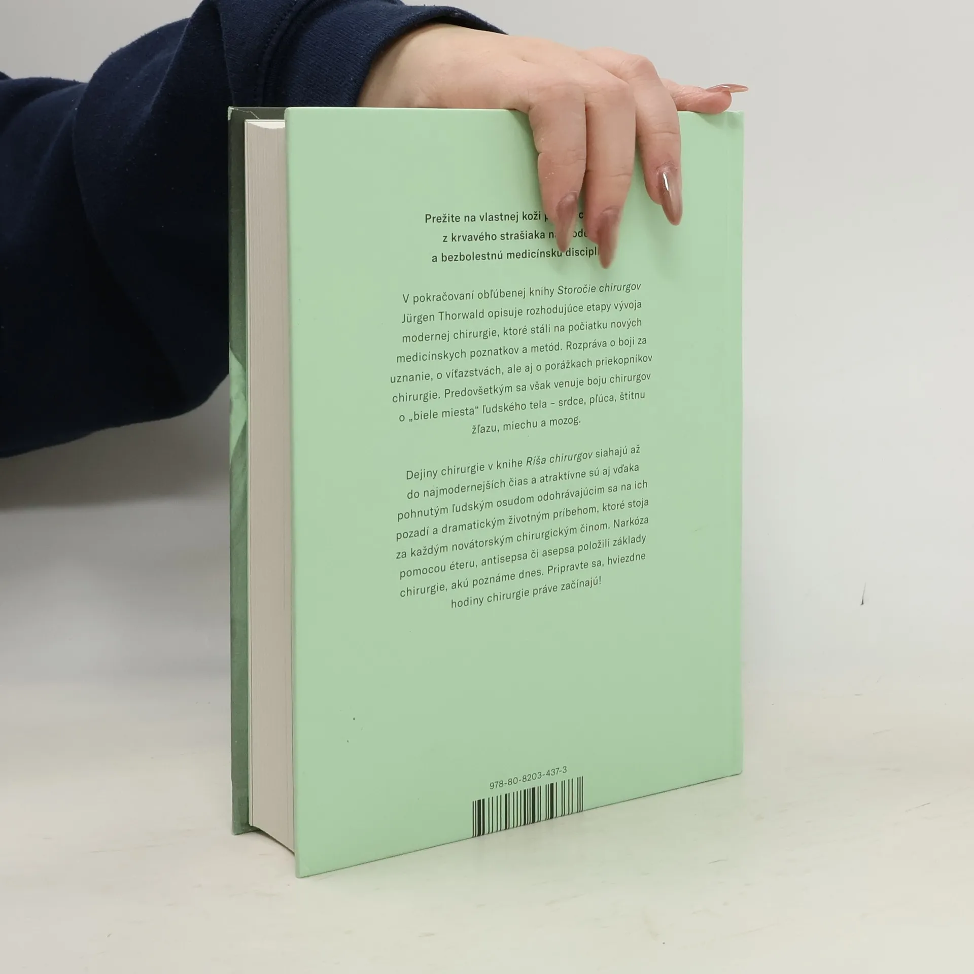 Prežite na vlastnej koži prerod chirurgie z krvavého strašiaka na modernú a bezbolestnú medicínsku disciplínu. Pokračovanie obľúbenej knihy Storočie chirurgov od Jürgena Thorwalda ponúka ďalšie príbehy pozoruhodných dejín medicíny. Pripravte sa, hviezdne hodiny chirurgie práve začínajú! Šestnásteho októbra 1846 sa v Massachusetts General Hospital v Bostone podarilo uskutočniť prvú bezbolestnú operáciu pod narkózou. Začína sa tak bezprecedentný vývoj modernej chirurgie. Jürgen Thorwald opisuje jej rozhodujúce etapy prostredníctvom pôsobivých príhod, ktoré stáli na počiatku nových medicínskych poznatkov a metód. Rozpráva o boji za uznanie, o víťazstvách, ale aj o porážkach priekopníkov chirurgie. Knihy Jürgena Thorwalda predstavujú populárno-vedeckú literatúru v tej najlepšej podobe. S veľkým rozprávačským majstrovstvom nám predstavuje svety medicíny či kriminalisticky z tých najnezvyčajnejších uhlov pohľadu. Ríša chirurgov, ktorá pôvodne vyšla v roku 1958, predstavuje pokračovanie obľúbenej knihy Storočie chirurgov. Thorwald sa v nej venuje boju chirurgov o „biele miesta“ ľudského tela – srdce, pľúca, štítnu žľazu, miechu a mozog. Dejiny chirurgie v knihe Ríša chirurgov siahajú až do najmodernejších čias a atraktívne sú aj vďaka pohnutým ľudským osudom odohrávajúcim sa na ich pozadí a dramatickým životným príbehom, ktoré stoja za každým novátorským chirurgickým činom. Narkóza pomocou éteru, antisepsa či asepsa položili základy chirurgie, akú poznáme dnes. Ak politici hovoria o ríšach, ktoré tvorí vojenská a hospodárska moc, Thorwald hovorí o ríši, ktorá vznikla z boja o život človeka. Jej hrdinami sú lekári a lekárky.