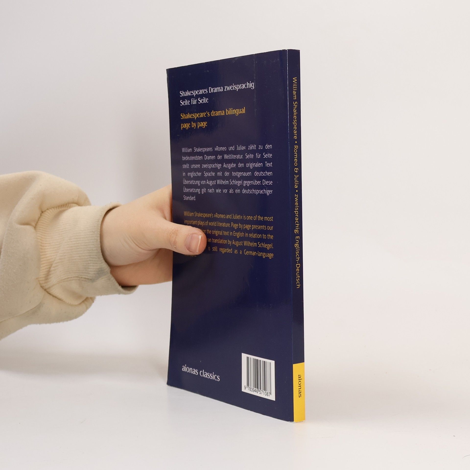 Shakespeares Drama »Romeo und Julia« zweisprachig im Original und in der deutschen Fassung, Seite für Seite und Absatz für Absatz. William Shakespeares »Romeo und Julia« zählt zu den bedeutendsten Dramen der Weltliteratur. Seite für Seite stellt die zweisprachige Ausgabe den originalen Text in englischer Sprache der textgenauen deutschen Übersetzung August Wilhelm Schlegels übersichtlich gegenüber. Diese Übersetzung von Schlegel gilt nach wie vor als ein deutschsprachiges Standardwerk. Über das Drama: Romeo und Julia sind das berühmteste Liebespaar der Weltliteratur. Es ist zugleich eines der vollendetsten Dramen Shakespeares. Die zwei Liebenden gehören sich verfeindeten Familien an. Sie heiraten heimlich und hoffen auf die Versöhnung der Familien. Der Hass der Clans steht zwischen ihnen. Erst im Tod sind sie vereint.