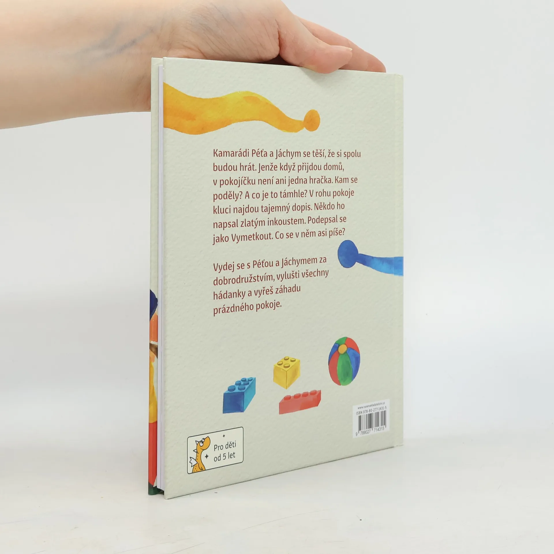 Poslední školkový den! A poslední školní! Prázdniny jsou tady! Jenže co se to stalo? Kam Péťovi zmizely hračky? „Ty jsi všechno uklidil?“ ptá se Jáchym. „Neuklidil jsem nic,“ říká Péťa. Jenže pokoj je úplně prázdný. Není tu ani jedna kostička lega. Ale co je to támhle? V rohu pokoje. Tajemný dopis napsaný zlatým písmem. S podivným podpisem: Vymetkout. Vydej se s Péťou a Jáchymem za dobrodružstvím, vylušti všechny hádanky a vyřeš záhadu prázdného pokoje. Edice Dráčkovo první čtení přináší dobrodružství pro předškoláky a žáky prvních a druhých tříd. Velké písmo, barevné ilustrace a veselý příběh, s jehož hrdiny se začínající čtenáři můžou snadno ztotožnit, podpoří radost ze čtení i odvahu zkusit se knížkou „prokousat“ samostatně. Kapitoly jsou krátké, aby čtení rychle ubíhalo, a mají pečlivě volená jednoduchá slova, aby si děti snáze vybudovaly své čtenářské sebevědomí. V závěru najdete také cvičení na rozvoj čtenářských dovedností vhodná jak pro samostatné, tak společné vypracovávání (např. v rámci vyučování ve škole). Knížka má tvrdou vazbu, aby v rodině vydržela i pro další generaci malých čtenářů.