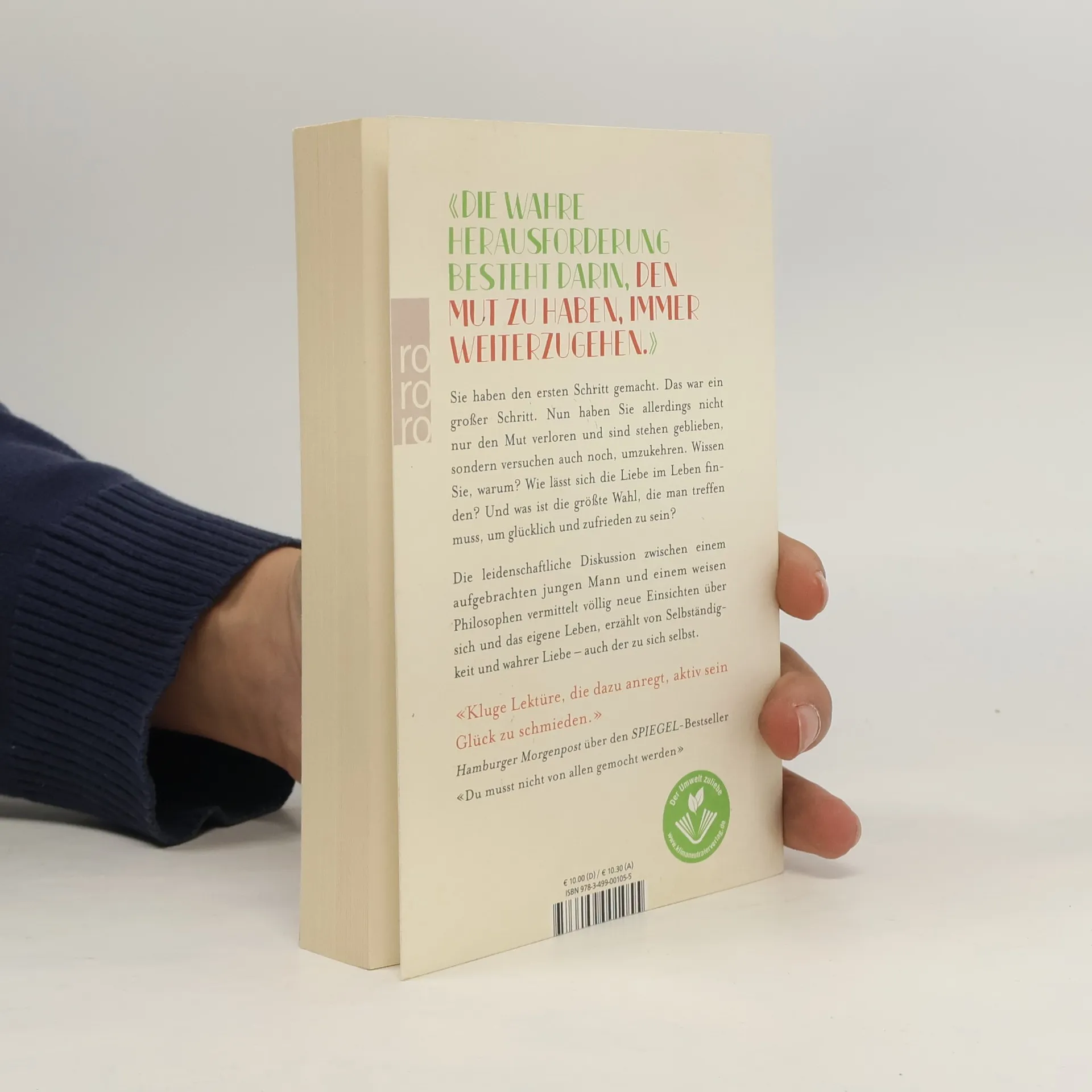 In der Fortsetzung des SPIEGEL-Bestsellers «Du musst nicht von allen gemocht werden» hadert der junge Mann mit der Umsetzung seiner neu gewonnen Erkenntnisse und einer großen Angst vorm Scheitern: Wie lässt sich das Glück im Leben finden? Wie lassen sich Adlers Prinzipien im normalen Alltag praktizieren? Und was ist «die größte Wahl» im Leben, die man treffen muss, um glücklich und zufrieden zu leben? Auch diesmal wird die leidenschaftliche Diskussion zwischen dem aufgebrachten jungen Mann und dem weisen Philosophen dem Leser völlig neuen Einsichten über sich selbst und das eigene Leben vermitteln.