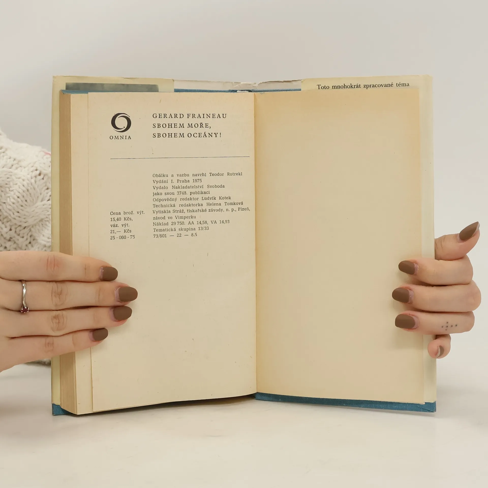There are currently of book Sbohem moře, sbohem oceány! (1975) in stock.