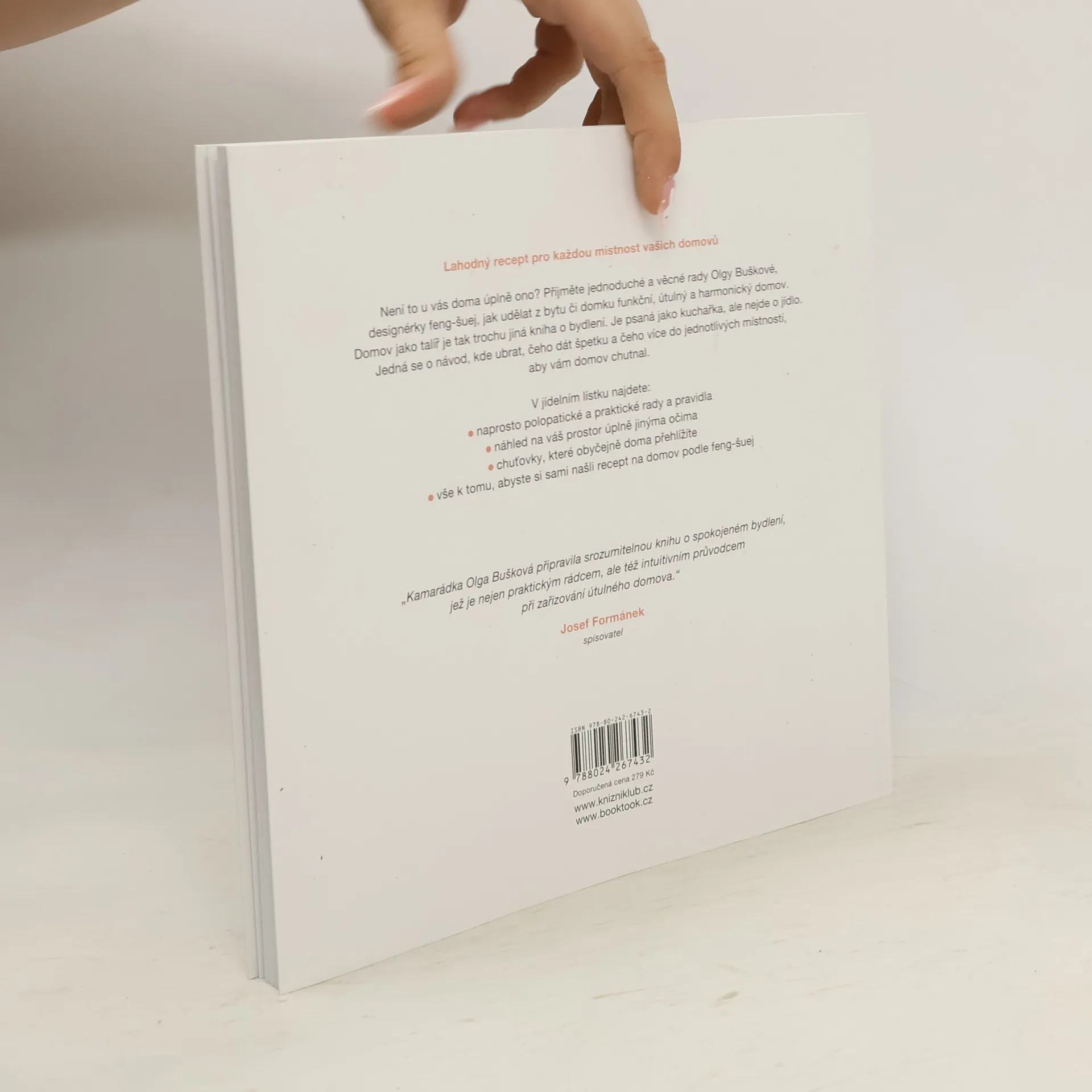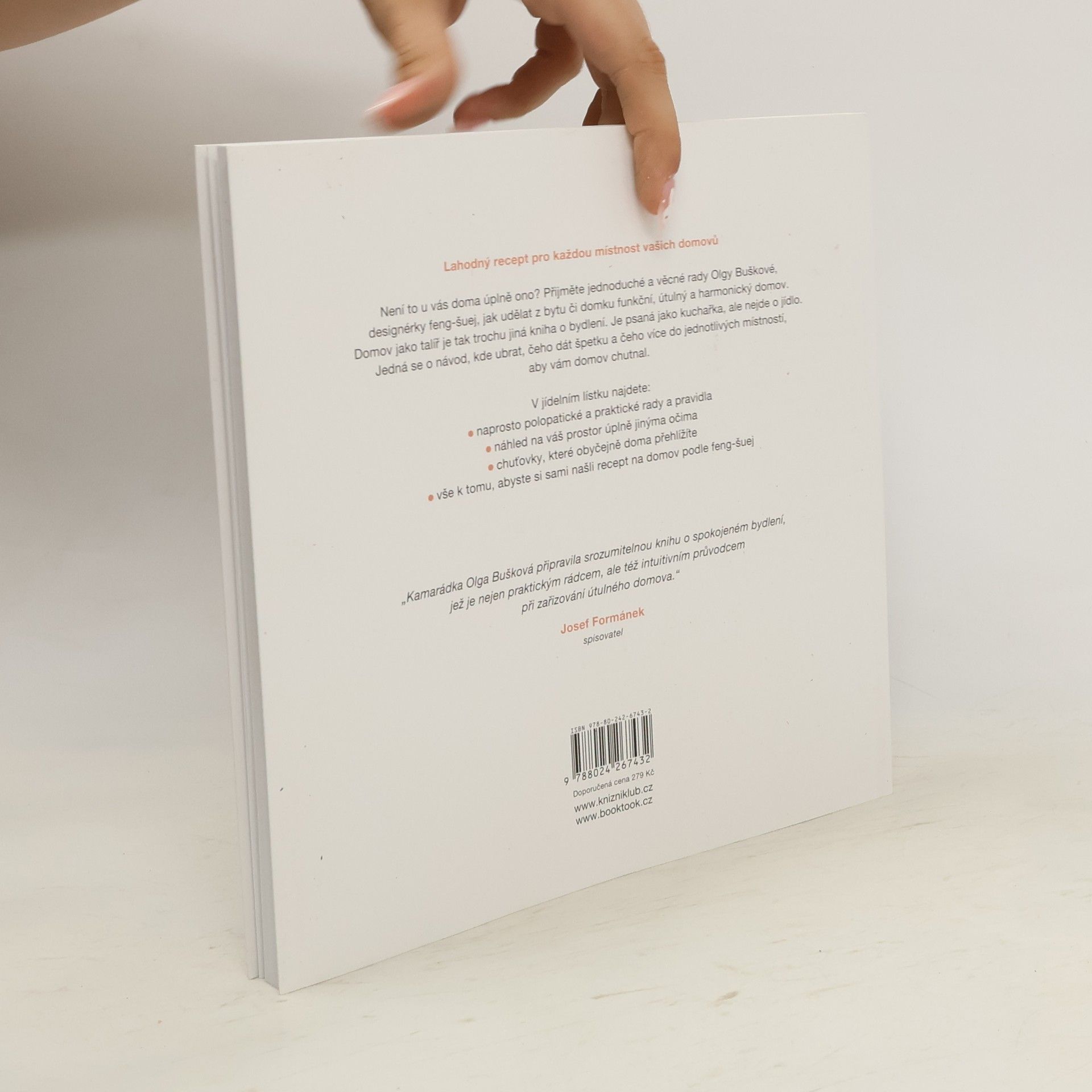 Domov je jako talíř a záleží jen na vás, co si nandáte. Není to u vás doma úplně ono? V této knize najdete jednoduché a věcné rady k tomu, jak udělat z bytu či domku funkční, útulný a harmonický domov. Autorka Olga Bušková, terapeutka a designerka Feng-šuej, vás přehledně provede každým koutem a poradí vám, čeho dát špetku a čeho více do jednotlivých místností, aby vám domov „chutnal“. Sice vám doma neuklidí, ale dá vám recepty, jak si bydlení zútulnit s vtipem a elegancí.