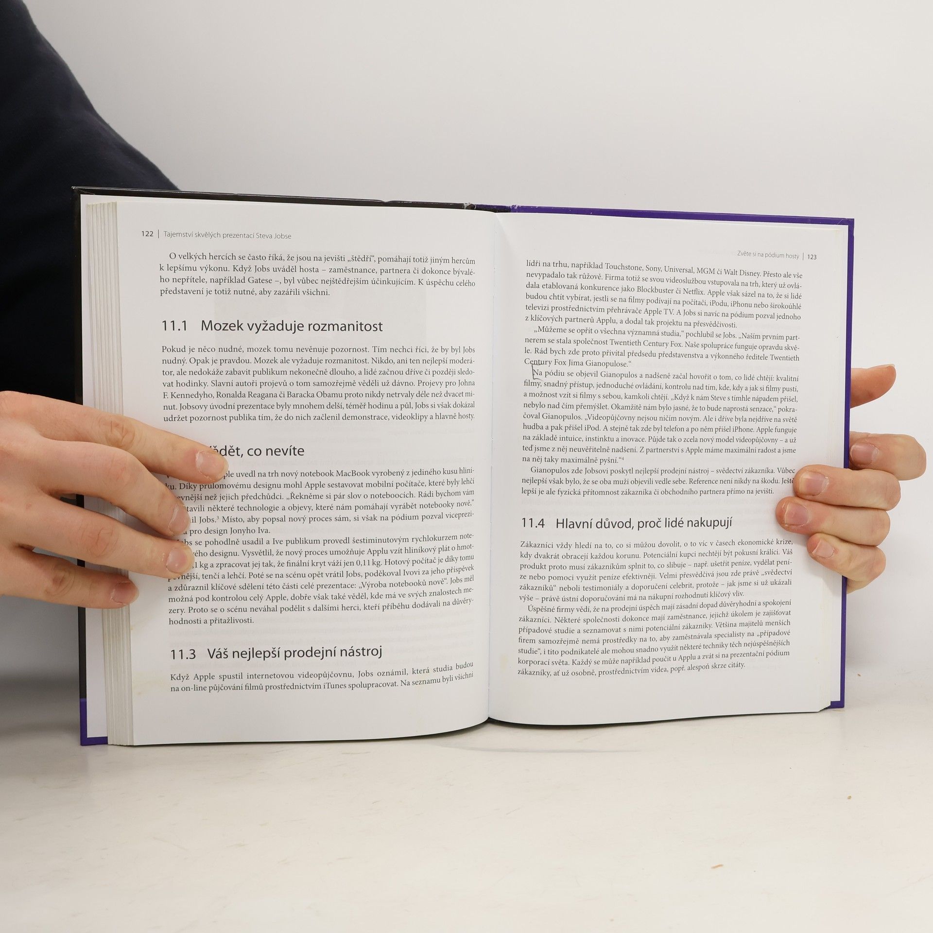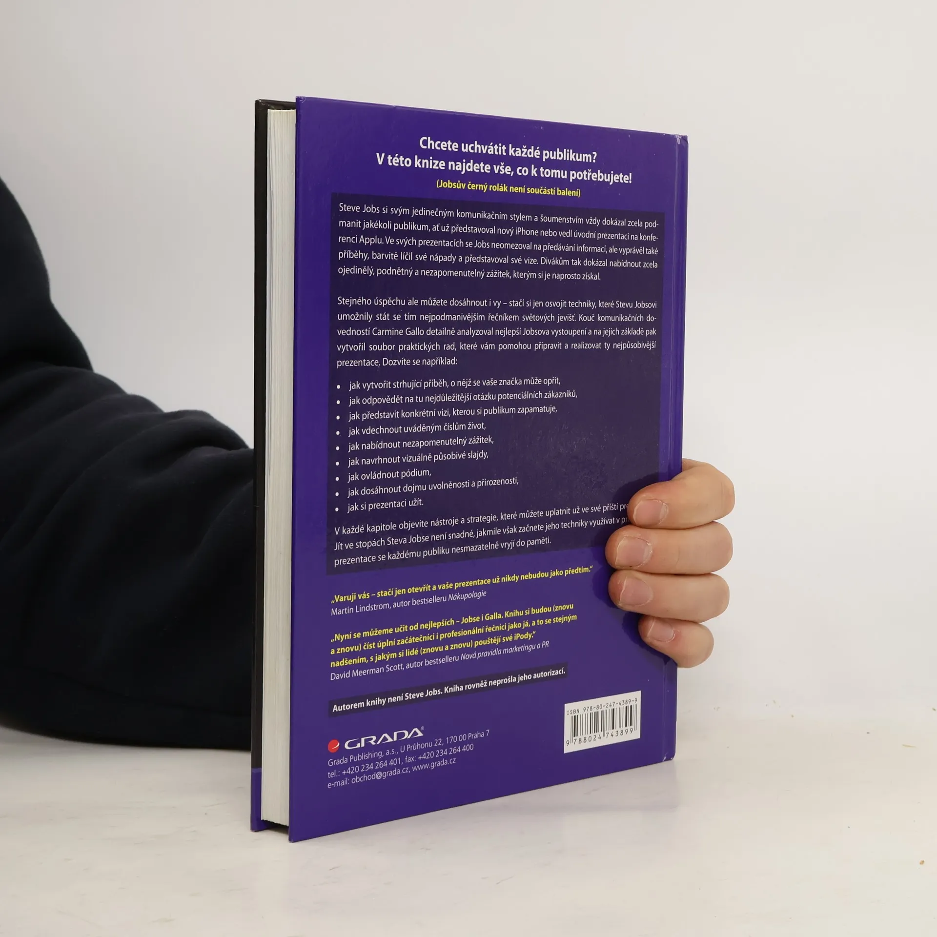 Světově populární prezentace Steva Jobse, zakladatele Apple, se staly zlatým standardem. Tato kniha vám krok za krokem ukáže, jak využít jeho techniky při vlastních vystoupeních. Autor, komunikační expert Carmine Gallo, analyzoval nejlepší Jobsovy prezentace a nabízí podrobné příklady a techniky, které odhalují tajemství úspěšných prezentací. Zjistíte, jak snadno prodat své myšlenky, sdílet nadšení a ohromit publikum. Jobs si svým jedinečným stylem dokázal podmanit jakékoli publikum, ať už představoval nový iPhone nebo vedl konferenci. Jeho prezentace nebyly jen o informacích, ale také o vyprávění příběhů a představování vizí, což divákům poskytlo nezapomenutelný zážitek. Stejného úspěchu můžete dosáhnout i vy, pokud si osvojíte techniky, které Jobsovi umožnily stát se fascinujícím řečníkem. Gallo detailně analyzoval Jobsova vystoupení a vytvořil praktické rady pro přípravu působivých prezentací. Dozvíte se, jak vytvořit strhující příběh, odpovědět na otázky zákazníků, představit vizi, oživit čísla, navrhnout vizuálně působivé slajdy a ovládnout pódium. V každé kapitole objevíte nástroje a strategie, které můžete uplatnit ve své další prezentaci. Jakmile začnete tyto techniky využívat, vaše vystoupení zanechá v publiku nezapomenutelný dojem.