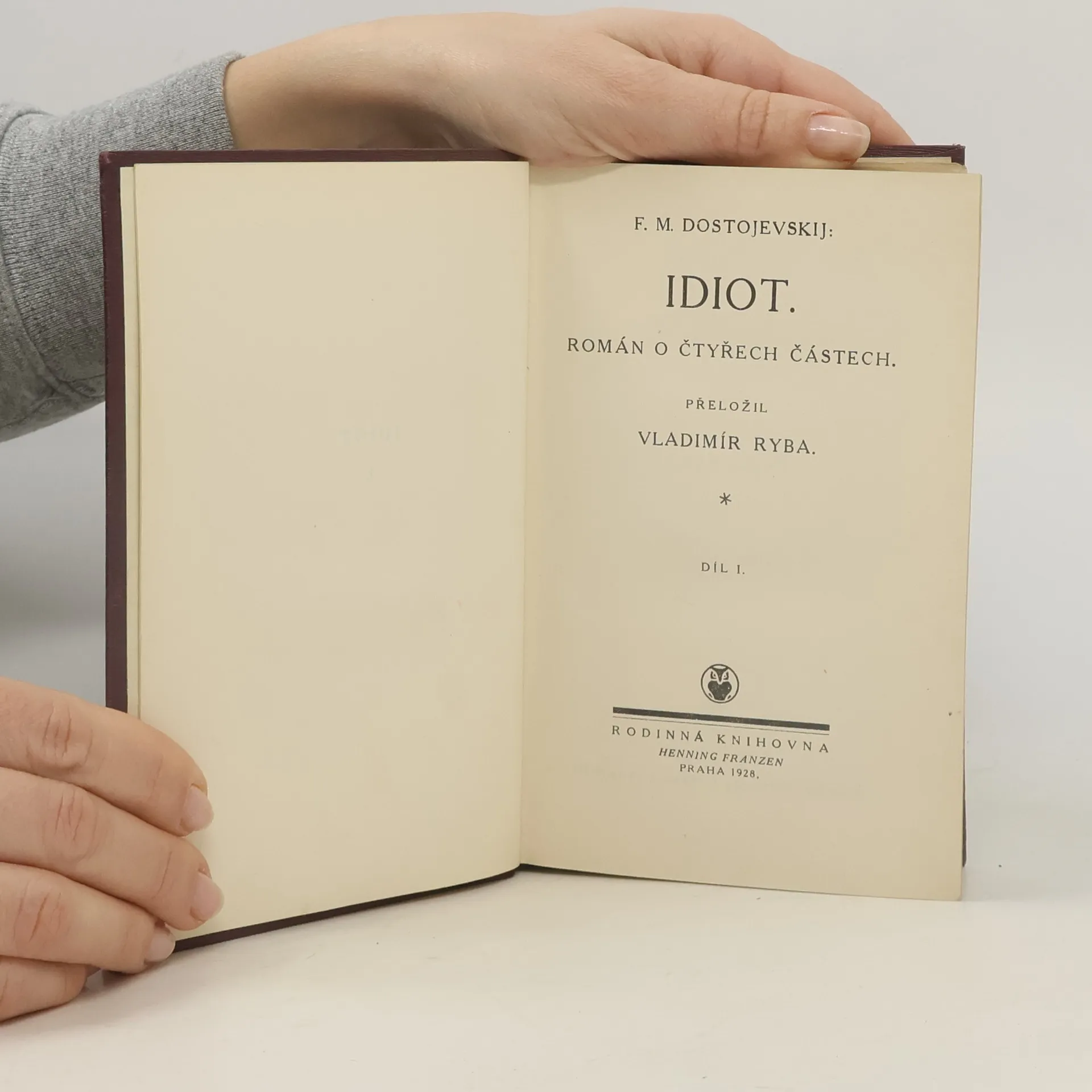 Dvousvazkové vydání. Román Idiot se řadí k nejznámějším dílům ruské literatury. Mladý kníže Myškin, zcela zchudlý a postižený epilepsií, prožije po návratu ze švýcarského sanatoria tak podivuhodné příběhy, že upadne znovu do své duševní nemoci. Setkává se s kupcem Parfjonem Rogožinem, kterého jeho žárlivost dovede až k vraždě milované Nastasji. Kníže však v něm vidí především nešťastného člověka a soucítí s ním. Sám se psychicky zhroutí. Lidé, kteří nemohou pochopit jeho dobrotu, označují Myškina za idiota, ačkoli ten má v sobě tolik vnitřní ušlechtilosti a lidskosti, že se tím vymyká svému okolí. Myškin okouzluje svou nevinností a vyrovnaností – autor představuje hrdinu jako člověka, který by mohl povznést svět; jemomže Myškin svou filozofií pokory a všelásky přivádí do neštěstí i ty, které miluje, a nakonec sám sebe…