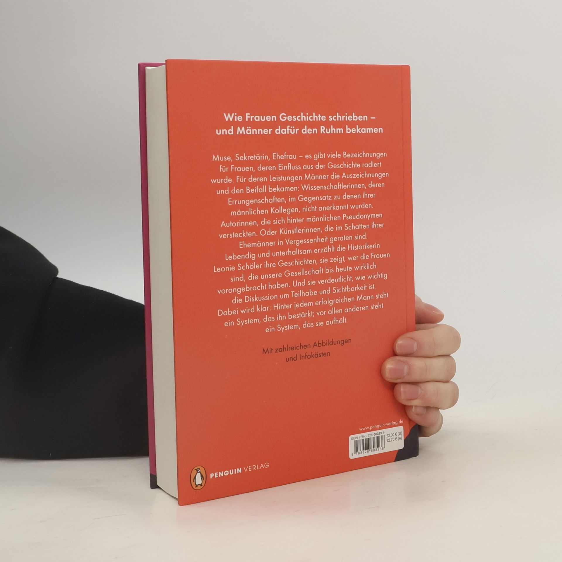 Wie Frauen Geschichte schrieben – und Männer dafür den Ruhm bekamen Muse, Sekretärin, Ehefrau – es gibt viele Bezeichnungen für Frauen, deren Einfluss aus der Geschichte radiert wurde. Für deren Leistungen Männer die Auszeichnungen und den Beifall bekamen: Wissenschaftlerinnen, deren Errungenschaften, im Gegensatz zu denen ihrer männlichen Kollegen, nicht anerkannt wurden. Autorinnen, die sich hinter männlichen Pseudonymen versteckten. Oder Künstlerinnen, die im Schatten ihrer Ehemänner in Vergessenheit geraten sind. Lebendig und unterhaltsam erzählt die Historikerin Leonie Schöler ihre Geschichten, sie zeigt, wer die Frauen sind, die unsere Gesellschaft bis heute wirklich vorangebracht haben. Und sie verdeutlicht, wie wichtig die Diskussion um Teilhabe und Sichtbarkeit ist. Dabei wird klar: Hinter jedem erfolgreichen Mann steht ein System, das ihn bestärkt; vor allen anderen steht ein System, das sie aufhält. Mit zahlreichen Abbildungen und Infokästen