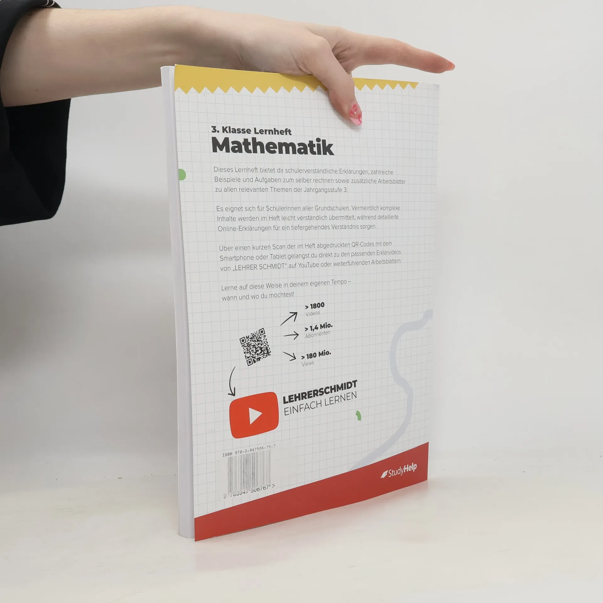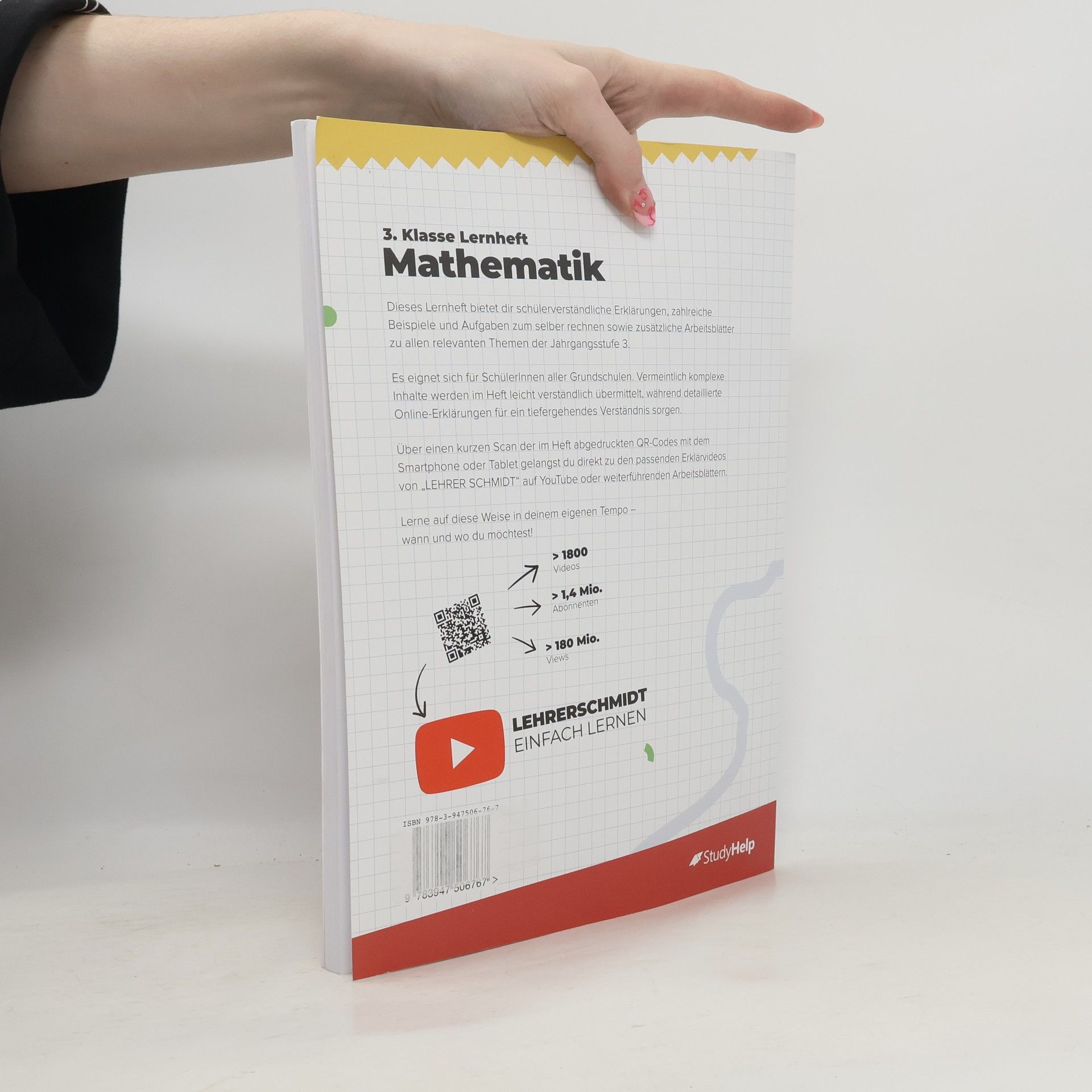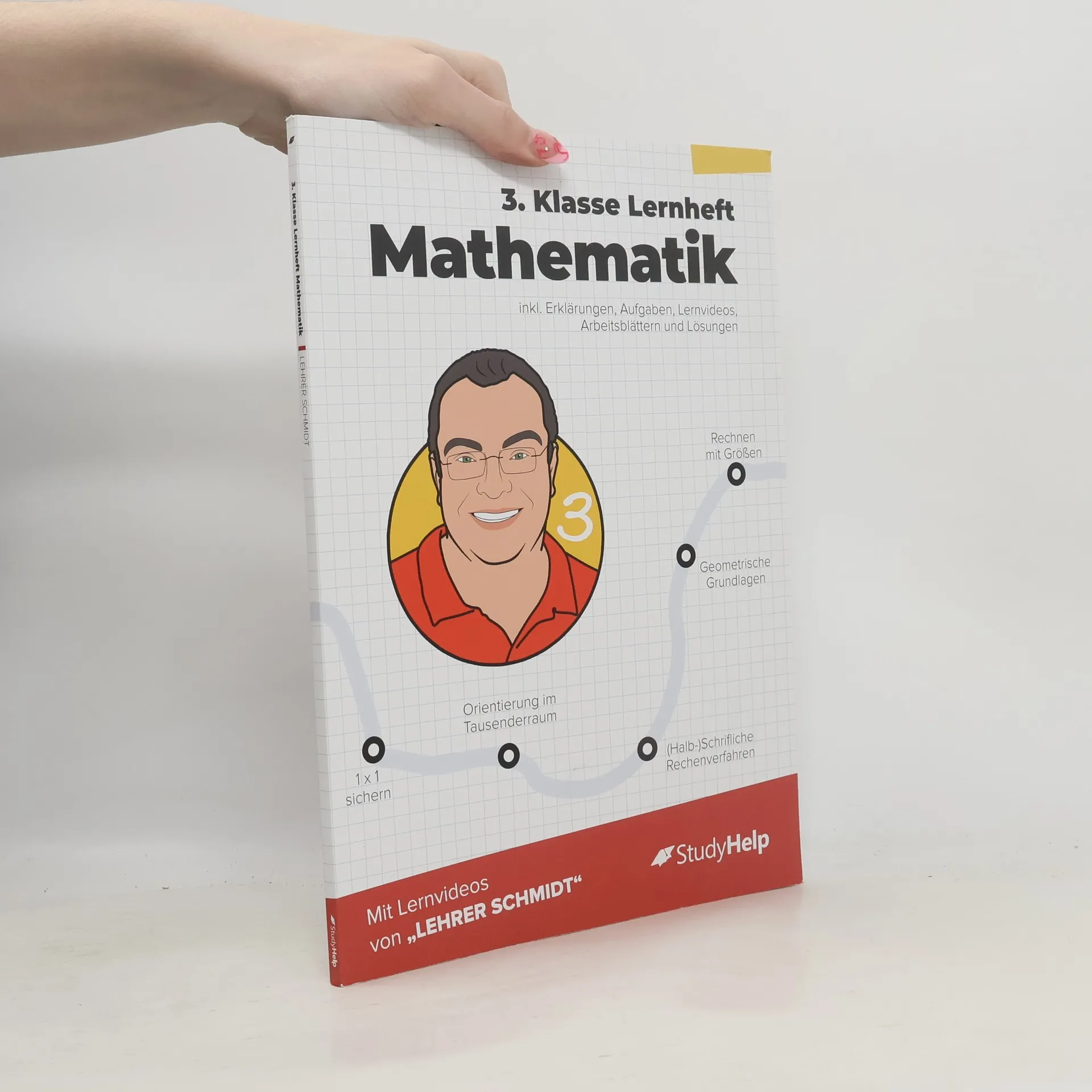 Unser Lernheft ist die ideale Ergänzung zu deinem Schulbuch und unterstützt dich mit Lernvideos von „Lehrer Schmidt“, um den Überblick zu behalten! Es umfasst 102 Seiten und bietet anschauliche Erklärungen, 51 Lernvideos (werbefrei), 41 zusätzliche Arbeitsblätter zum Download sowie 65 Aufgaben mit Lösungen. Hier findest du Erklärungen, Beispiele und Aufgaben zu allen relevanten Themen der 3. Klasse. Egal, ob du den aktuellen Stoff vertiefen oder bereits Gelerntes wiederholen möchtest, hier wirst du fündig. Komplizierte Zusammenhänge werden in verständlicher Sprache erklärt, ergänzt durch Merksätze, Skizzen und notwendige Materialien. Die Lernvideos und die didaktisch aufbereiteten Arbeitsblätter von Sebastian Kottmann unterstützen dich zusätzlich. Alle Themen sind in übersichtliche Kapitel gegliedert, die dich durch die 3. Klasse leiten. Im 3. Schuljahr wird das Einmaleins und Einsdurcheins gefestigt, gefolgt von Geteiltaufgaben mit Rest und der Erweiterung des Zahlenraums bis 1000. Konkretes Material wie Tausenderwürfel und Hunderterplatten helfen bei der Erfassung des neuen Zahlenraums. Die schriftliche Addition und Subtraktion wird im 2. Halbjahr geübt. Zu den Themen gehören unter anderem das Automatisieren des Einmaleins, Geometrie, Rechnen mit Größen sowie Daten und Diagramme. Nutze die „Blick ins Buch“-Funktion für einen tieferen Einblick!