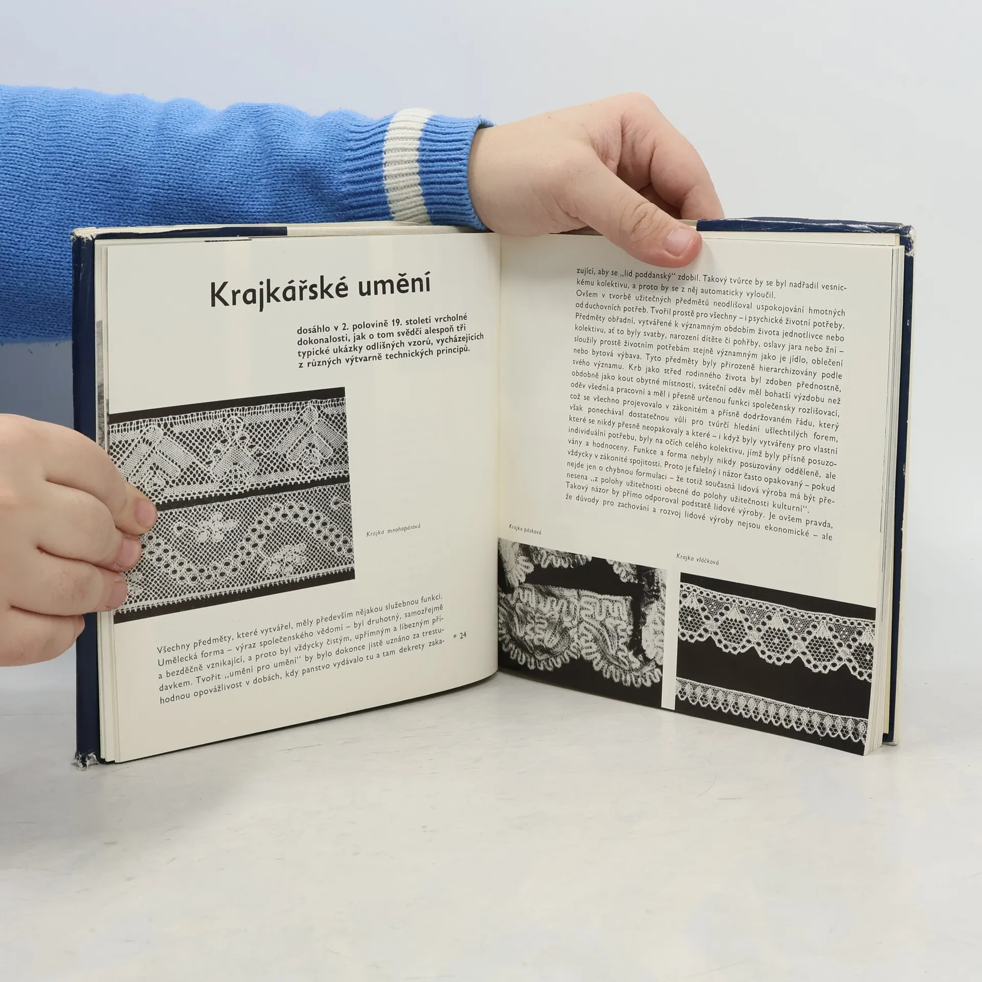Historie. přehled a popis práce lidových umělců na území ČSR. Ornamenty, kraslice, krajky, keramika, výšívky, loutky a panenky, nábytek a užitné umění.