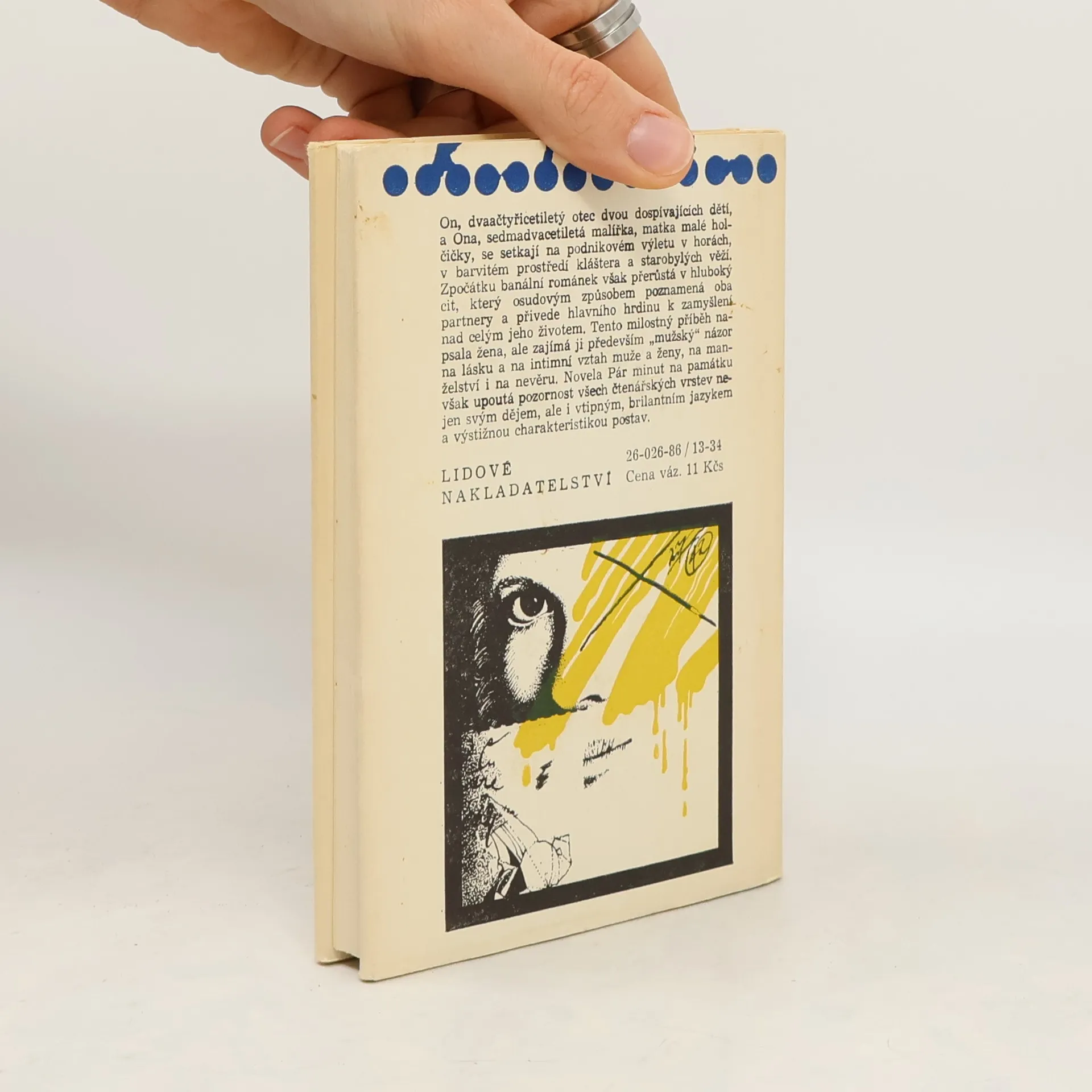 On, dvaačtyřicetiletý otec dvou dospívajících dětí, a Ona, sedmadvacetiletá malířka, matka malé holčičky, se setkají na podnikovém výletu v horách, v barvitém prostředí kláštera a starobylých věží. Zpočátku banální románek však přerůstá v hluboký cit, který osudovým způsobempoznamená oba partnery a přivede hlavního hrdinu k zamyšlení nad celým jeho životem. Tento milostný příběh napsala žena, ale zajímá ji především "mužský" názor na lásku a na intimní vztah muže a ženy, na manželství i na nevěru. Novela Pár minut na památku však upoutá pozornost všech čtenářských vrstev nejen svým dějem, ale i vtipným, brilantním jazykem a výstižnou charakteristikou postav.
