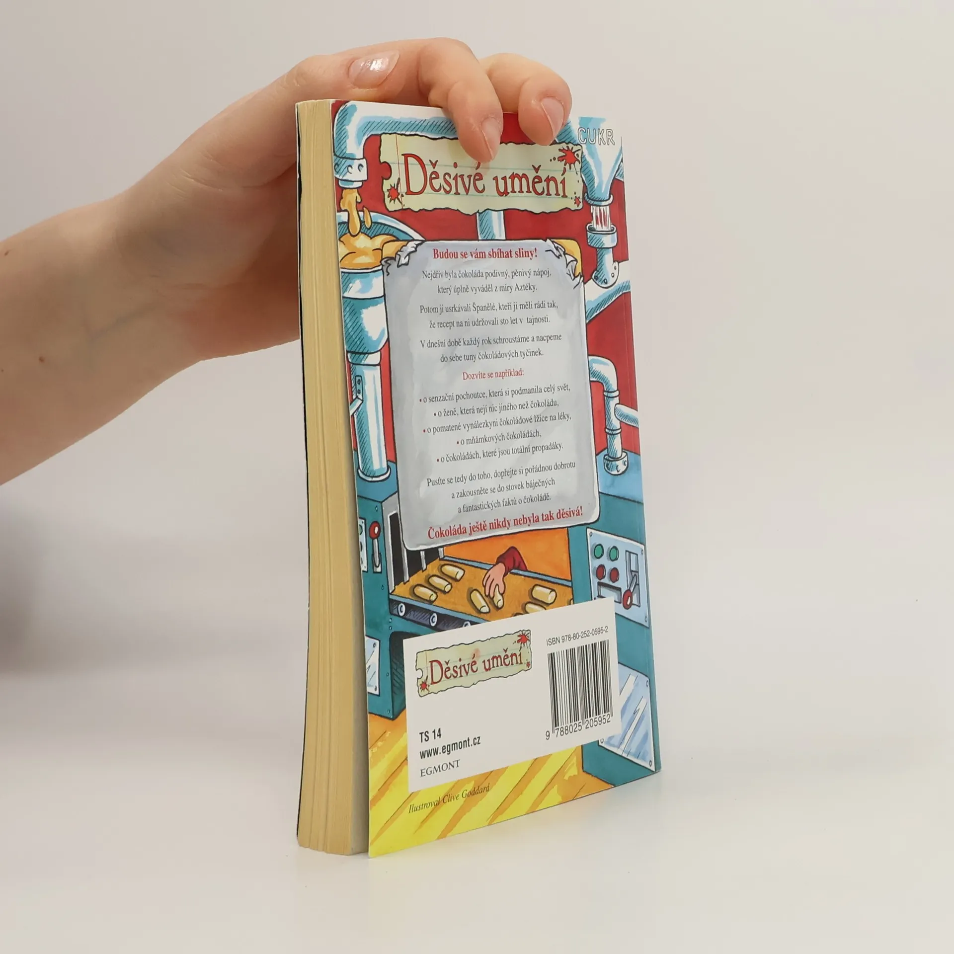 O čem se vám učitelé neodvažují říct. Nejdřív byla čokoláda podivný, pěnivý nápoj, na kterém ujížděli Aztékové. Potom ji usrkávali Španělé, které uchvátila natolik, že recept na ni udržovali sto let v tajnosti před zbytkem Evropy. My dnes každý rok schroustáme a nacpeme do sebe tuny čokoládových tyčinek. O tom všem je tato knížka. Dozvíte se v ní například o senzační pochoutce, která si podmanila celý svět, o ženě, která nejí nic jiného než čokoládu, ale i o druzích čokolády, které u zákazníků totálně propadly. Zakousněte se s chutí do stovek báječných a fantastických faktů o čokoládě. Umění nikdy nebylo tak děsivé!