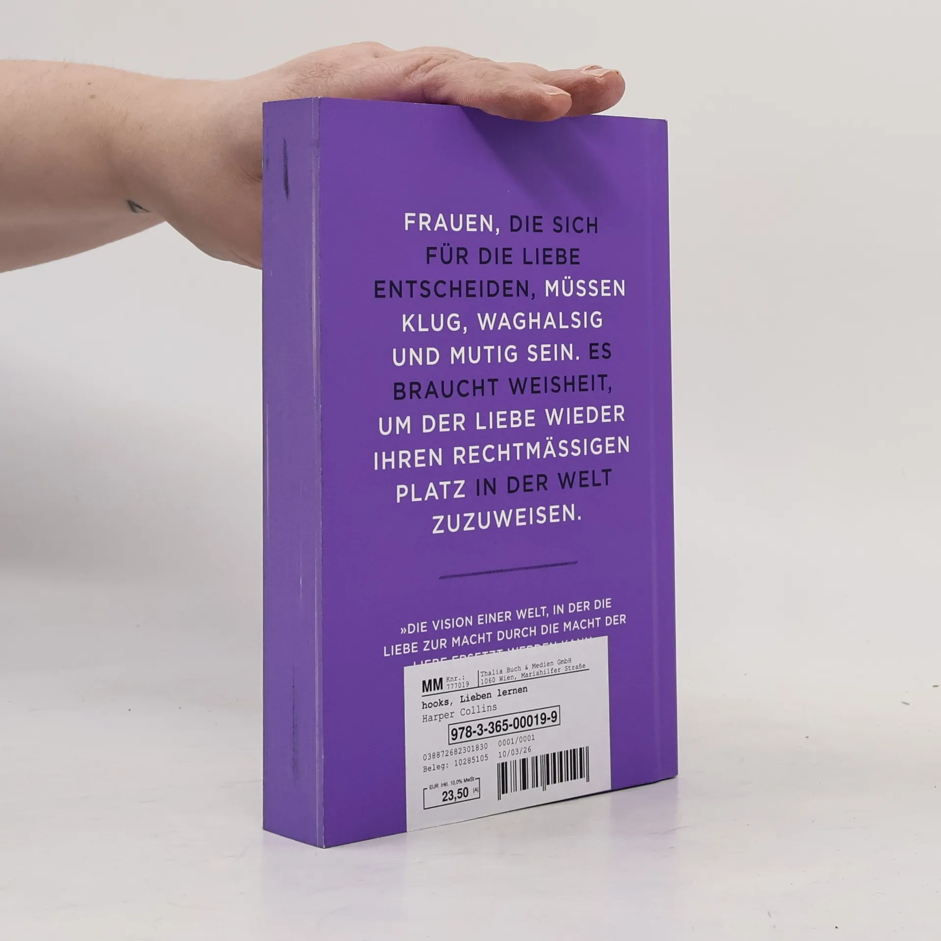 »Frauen, die sich für die Liebe entscheiden, müssen klug, waghalsig und mutig sein.« Ein großartiges Plädoyer für die Macht der Liebe Liebe(n) geht uns alle an. Unsere Sehnsucht und Suche nach Liebe hören nie auf. Egal wie alt wir sind. Warum fällt es uns dennoch so schwer, den wahren Stellenwert der Liebe gesellschaftlich anzuerkennen? Weshalb verharren so viele Menschen in Beziehungen, die schon lange nicht mehr liebevoll sind? Wieso stoßen vor allem ältere Frauen mit ihrem Liebesbedürfnis an Grenzen? Wo kollidieren Geschlechterrollen mit Erwartungen? Was hat der Feminismus damit zu tun? Wie hat die feministische Bewegung unsere Vorstellung von Liebe beeinflusst und verändert? Und inwieweit stecken wir bei Liebesdingen alle in patriarchalen Denkmustern und Machtstrukturen fest? Mit souveräner Offenheit begegnet die renommierte Literaturwissenschaftlerin bell hooks diesen Fragen. Jenseits aller Dogmen und Schuldzuweisungen entwirft sie eine neue Kunst des Liebens; basierend auf Freiheit, Selbstliebe und echter Verbundenheit. »Meisterhaft. Für alle Frauen (und Männer), die sich Gedanken über die Liebe machen, ist dieses Buch ein Valentinstaggeschenk.« Los Angeles Times »Die Vision einer Welt, in der die Liebe zur Macht durch die Macht der Liebe ersetzt werden kann.« Time Out New York
