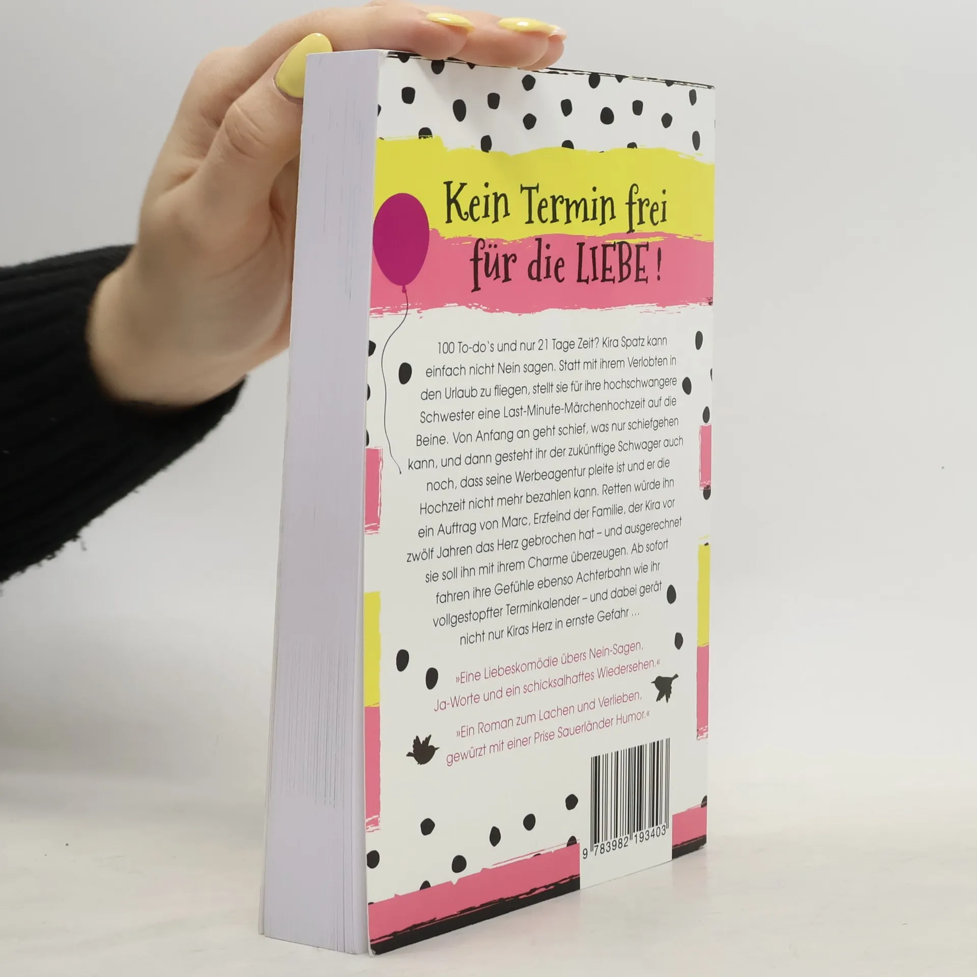 100 To-do´s und nur 21 Tage Zeit? Kira Spatz kann einfach nicht Nein sagen. Statt mit ihrem Verlobten in den Urlaub zu fliegen, stellt sie für ihre hochschwangere Schwester eine Last-Minute-Märchenhochzeit auf die Beine. Von Anfang an geht schief, was nur schiefgehen kann, und dann gesteht ihr der zukünftige Schwager auch noch, dass seine Werbeagentur pleite ist und er die Hochzeit nicht bezahlen kann. Retten würde ihn ein Auftrag von Marc, Erzfeind der Familie, der Kira vor zwölf Jahren das Herz gebrochen hat - und ausgerechnet sie soll ihn mit ihrem Charme überzeugen. Ab sofort fahren ihre Gefühle ebenso Achterbahn wie ihr vollgestopfter Terminkalender - und dabei gerät nicht nur Kiras Herz in ernste Gefahr ..."Eine turbulente Liebeskomödie übers Nein-Sagen, Ja-Worte und ein schicksalhaftes Wiedersehen.""Ein Roman zum Lachen und Verlieben, gewürzt mit einer Prise Sauerländer Humor."