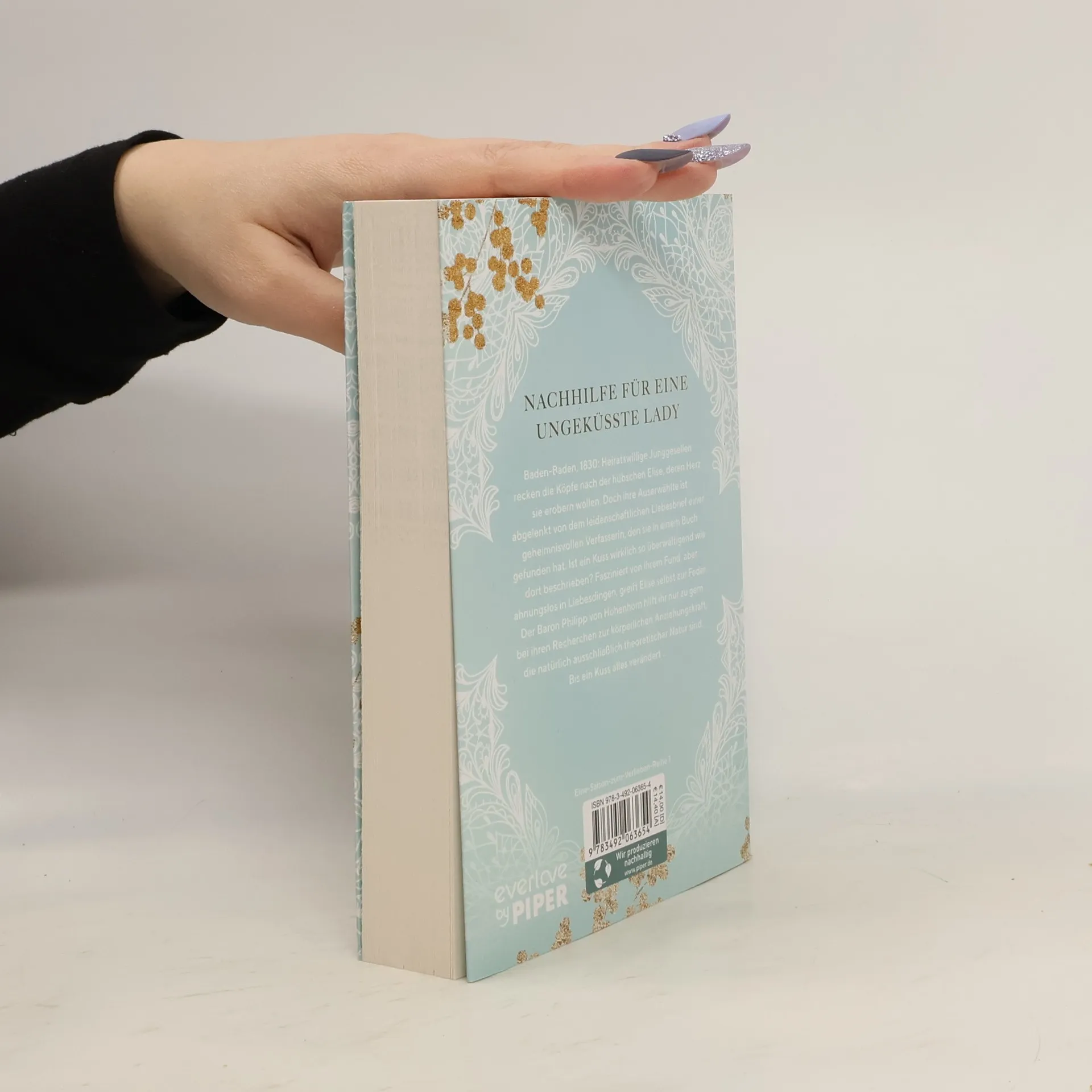 Baden-Baden, 1830: Heiratswillige Junggesellen recken die Köpfe nach der hübschen Elise, deren Herz sie erobern wollen. Doch ihre Auserwählte ist abgelenkt von dem leidenschaftlichen Liebesbrief einer geheimnisvollen Verfasserin, den sie in einem Buch gefunden hat. Ist ein Kuss wirklich so überwältigend wie beschrieben? Völlig vernarrt in den Fund, aber ahnungslos in Liebesdingen, greift Elise selbst zur Feder. Junggeselle Philipp hilft ihr nur zu gern bei ihren Recherchen zur körperlichen Anziehungskraft, die natürlich ausschließlich theoretischer Natur sind. Bis ein Kuss alles verändert.
