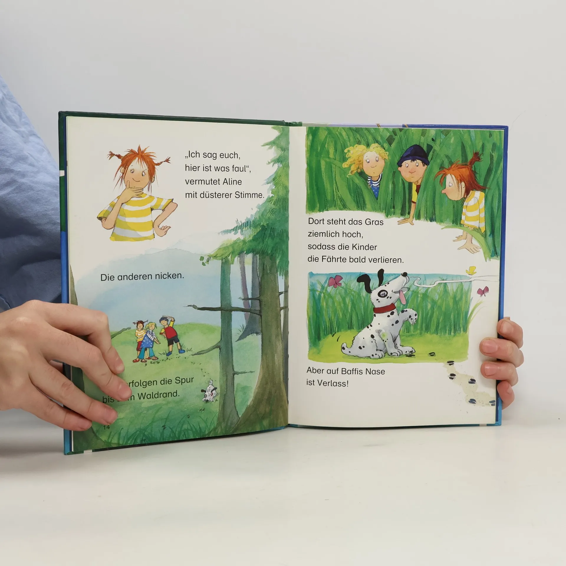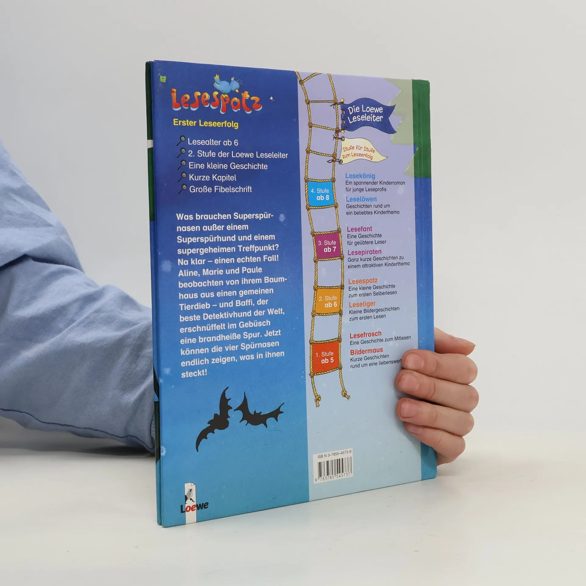 Lesealter ab 6 2. Stufe der Loewe-Leseleiter Eine kleine Geschichte Kurze Kapitel Große Fibelschrift Was brauchen Superspürnasen außer einem Superspürhund und einem supergeheimen Treffpunkt? Na klar - einen echten Fall! Aline, Marie und Paule beobachten von ihrem Baumhaus aus einen gemeinen Tierdieb - und Baffi, der beste Detektivhund der Welt, erschnüffelt im Gebüsch eine brandheiße Spur. Jetzt können die vier Spürnasen endlich zeigen, was in ihnen steckt!