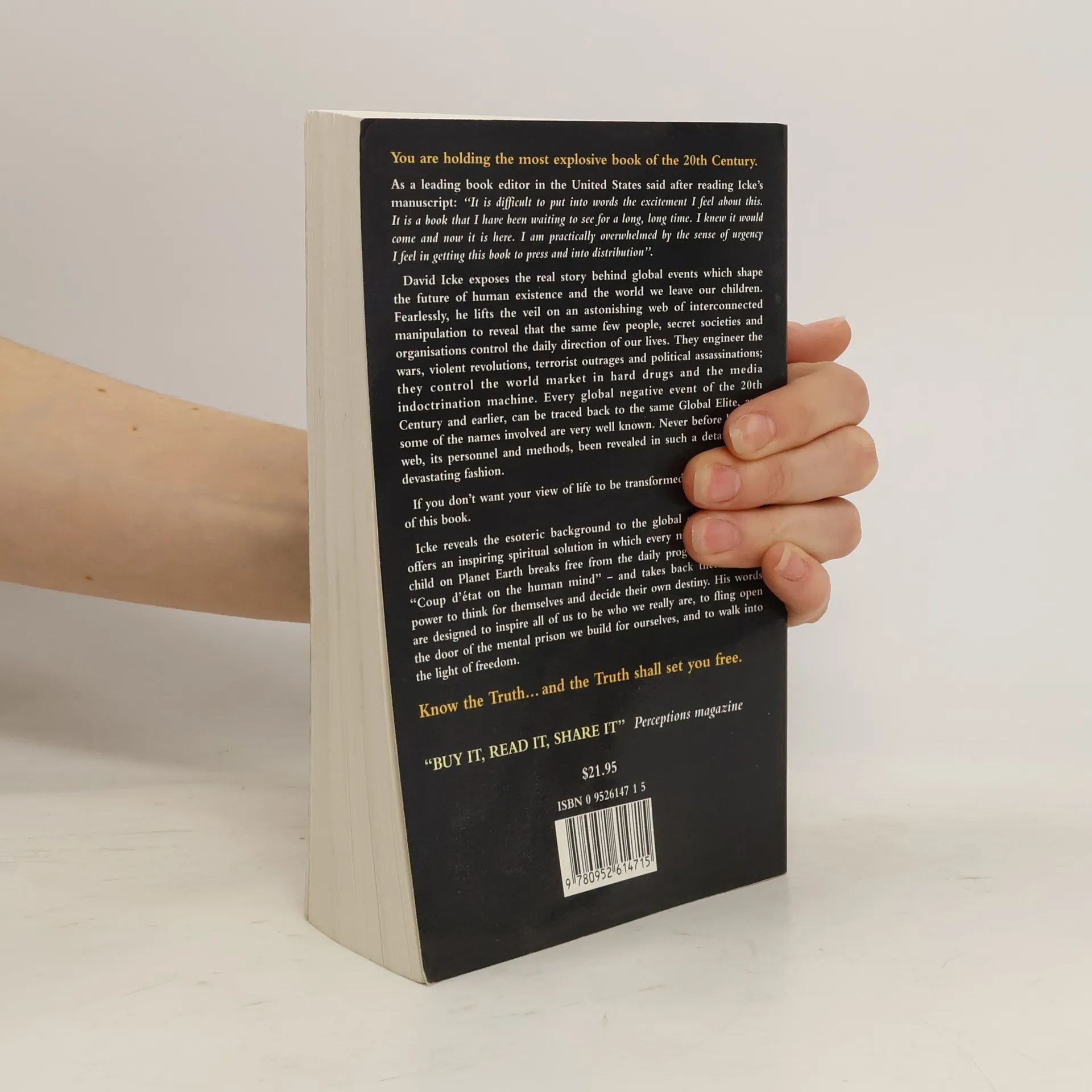 David Icke lifts the veil on an astonishing web of interconnected manipulation to reveal that the same people, secret societies and organizations control the daily direction of our lives. They engineer the wars, violent revolutions, terrorist outrages and political assassinations; they control the world market in hard drugs and the media indoctrination machinery. Every global negative event of the 20th Century and earlier can be traced to the same Global Elite. Never before has this web, its personnel and methods been revealed in such a detailed and devastating fashion. Icke reveals the esoteric background to the global conspiracy and offers an inspiring spiritual solution in which every man, woman and child breaks free from the daily programming -- the Coup d'etat on the human mind -- and takes back their infinite power to think for themselves and decide their own destinies.