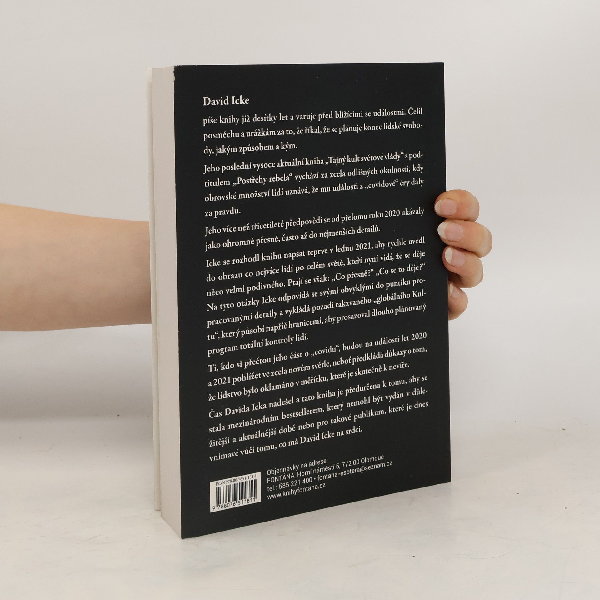 David Icke píše knihy již desítky let a varuje před blížícími se událostmi. Čelil posměchu a urážkám za to, že říkal, že se plánuje konec lidské svobody, jakým způsobem a kým. ***** Jeho poslední vysoce aktuální kniha „Tajný kult světové vlády“ s podtitulem „Postřehy rebela“ vychází za zcela odlišných okolností, kdy obrovské množství lidí uznává, že mu události z „covidové“ éry daly za pravdu. ***** Jeho více než třicetileté předpovědi se od přelomu roku 2020 ukázaly jako ohromně přesné, často až do nejmenších detailů. ***** Icke se rozhodl knihu napsat teprve v lednu 2021, aby rychle uvedl do obrazu co nejvíce lidí po celém světě, kteří nyní vidí, že se děje něco velmi podivného. Ptají se však: „Co přesně?“ „Co se to děje?“ Na tyto otázky Icke odpovídá se svými obvyklými do puntíku propracovanými detaily a vykládá pozadí takzvaného „globálního Kultu“, který působí napříč hranicemi, aby prosazoval dlouho plánovaný program totální kontroly lidí. ***** Ti, kdo si přečtou jeho část o „covidu“, budou na události let 2020 a 2021 pohlížet ve zcela novém světle, neboť předkládá důkazy o tom, že lidstvo bylo oklamáno v měřítku, které je skutečně k nevíře. ***** Čas Davida Icka nadešel a tato kniha je předurčena k tomu, aby se stala mezinárodním bestsellerem, který nemohl být vydán v důležitější a aktuálnější době nebo pro takové publikum, které je dnes vnímavé vůči tomu, co má David Icke na srdci.