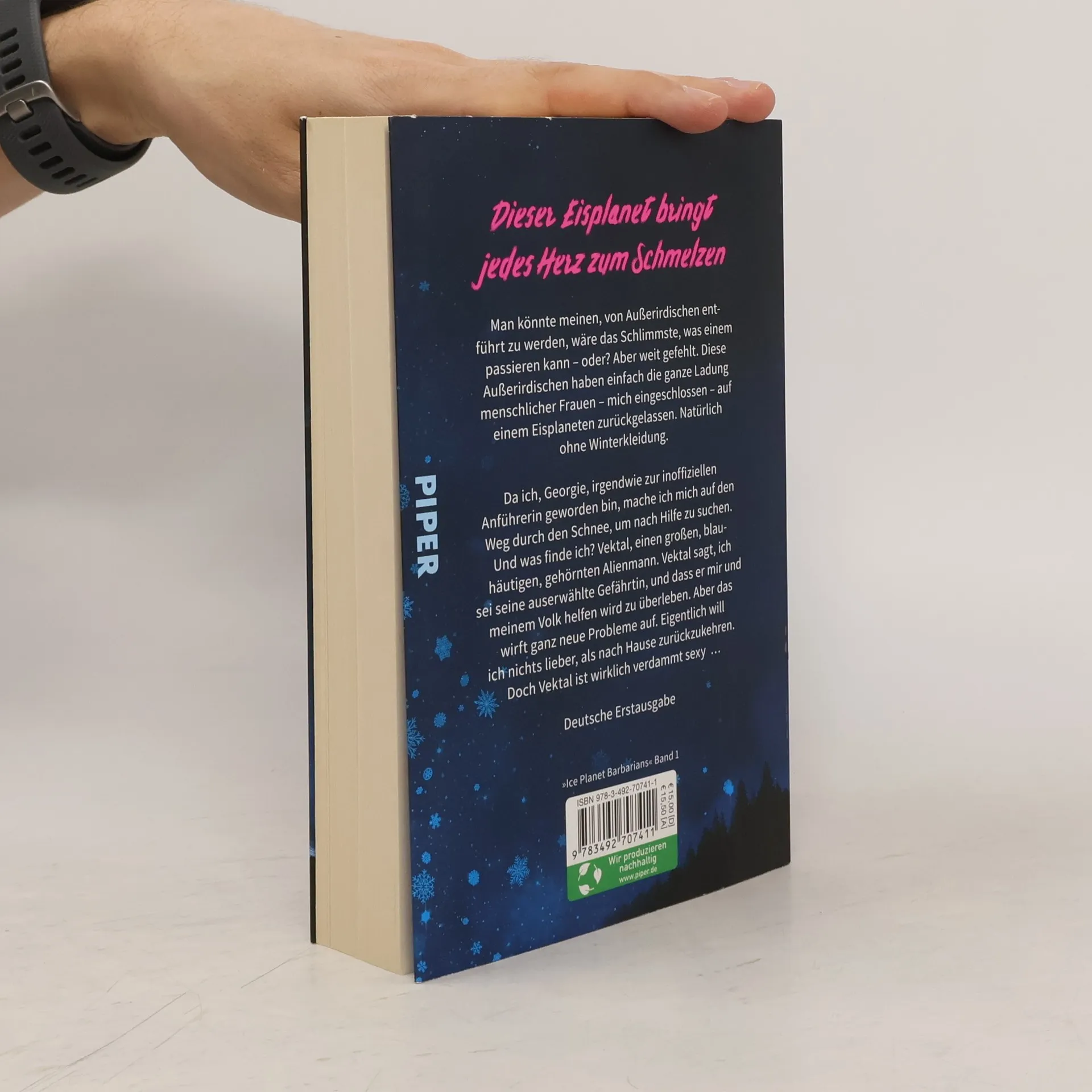 *** TikTok made me buy it – diese Spicy Romance-Reihe hat Suchtgefahr! Jetzt endlich auf Deutsch*** Dieser Eisplanet bringt jedes Herz zum Schmelzen! Georgie und einige andere Frauen wurden von Aliens entführt und sind auf einem fremden Planeten abgestürzt: einem Eisplaneten mit Schneestürmen und lebensbedrohlichen Temperaturen, auf dem es weit und breit nur Schnee und Kälte gibt. Georgie macht sich mit der einzigen wetterfesten Kleidung auf die Suche nach Hilfe, um ihre Begleiterinnen und sich zu retten. Und tatsächlich findet sie diese auch: Vektal, ein großer blauer Einheimischer, ist nicht nur äußerst hilfsbereit, sondern auch ziemlich sexy ... Dies ist der erste Band der Ice Planet Barbarians. In jedem Band dieser heißen Romance-Reihe wird die Love Story eines neuen Pärchens erzählt, das in einer unwirtlichen Welt voller Eis und Schnee zueinander findet. Weitere Bände der Reihe: Ice Planet Barbarians – Georgie und Vektal (Band 1) Ice Planet Barbarians – Liz und Raahosh (Band 2) Ice Planet Barbarians – Kira und Aehako (Band 3) Ice Planet Barbarians – Harlow und Rukh (Band 4) Ice Planet Barbarians – Tiffany und Salukh (Band 5)
