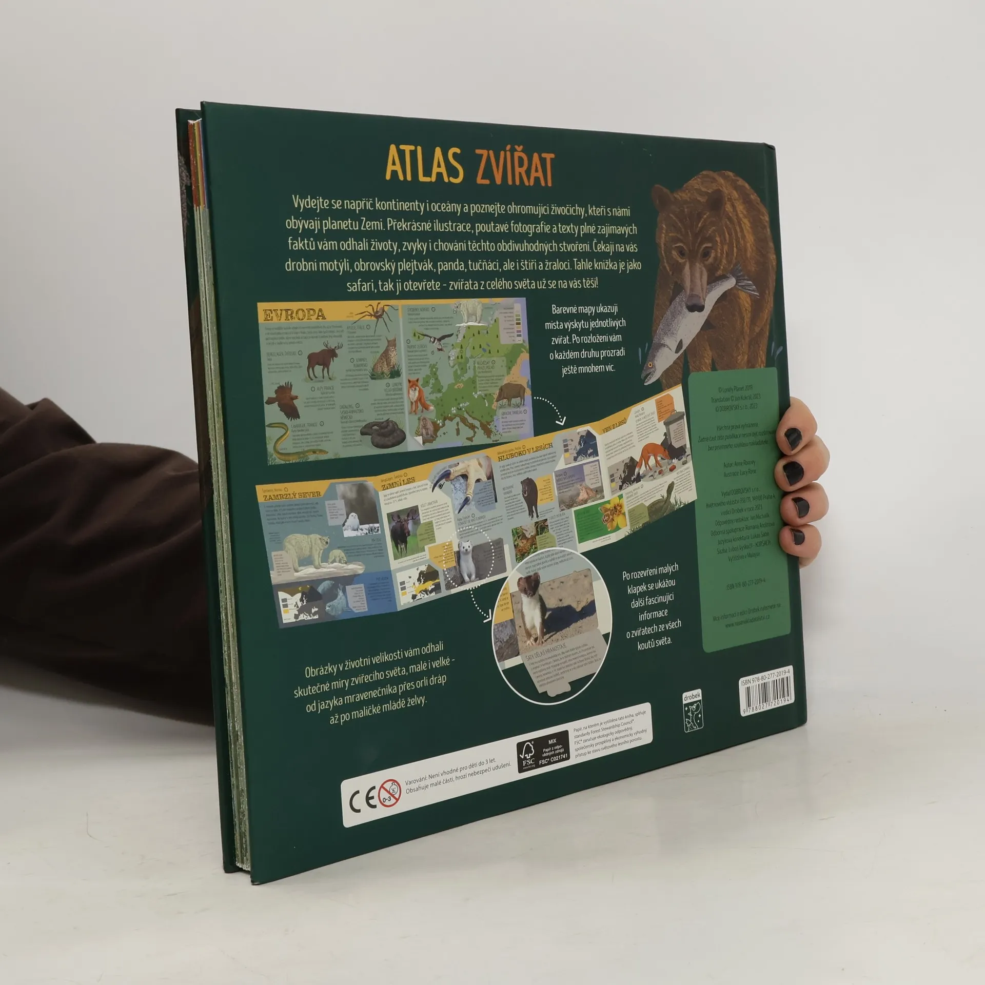 S Atlasem zvířat od Lonely Planet Kids proniknete do království divoké přírody jako nikdy předtím! Rozložením mapy odhalíte živočichy ze všech kontinentů a po nadzvednutí klapky spatříte jejich jedinečná životní prostředí i místa výskytu. Objevujte úžasný svět zvířecích faktů a fotografií v reálné velikosti. Prohlédněte si zblízka medvědí tlapu, želví mládě, jazyk mravenečníka, anebo sklípkance největšího - nejtěžšího pavouka na Zemi. Vše je zachycené tak, abyste se s nimi mohli sami porovnat.