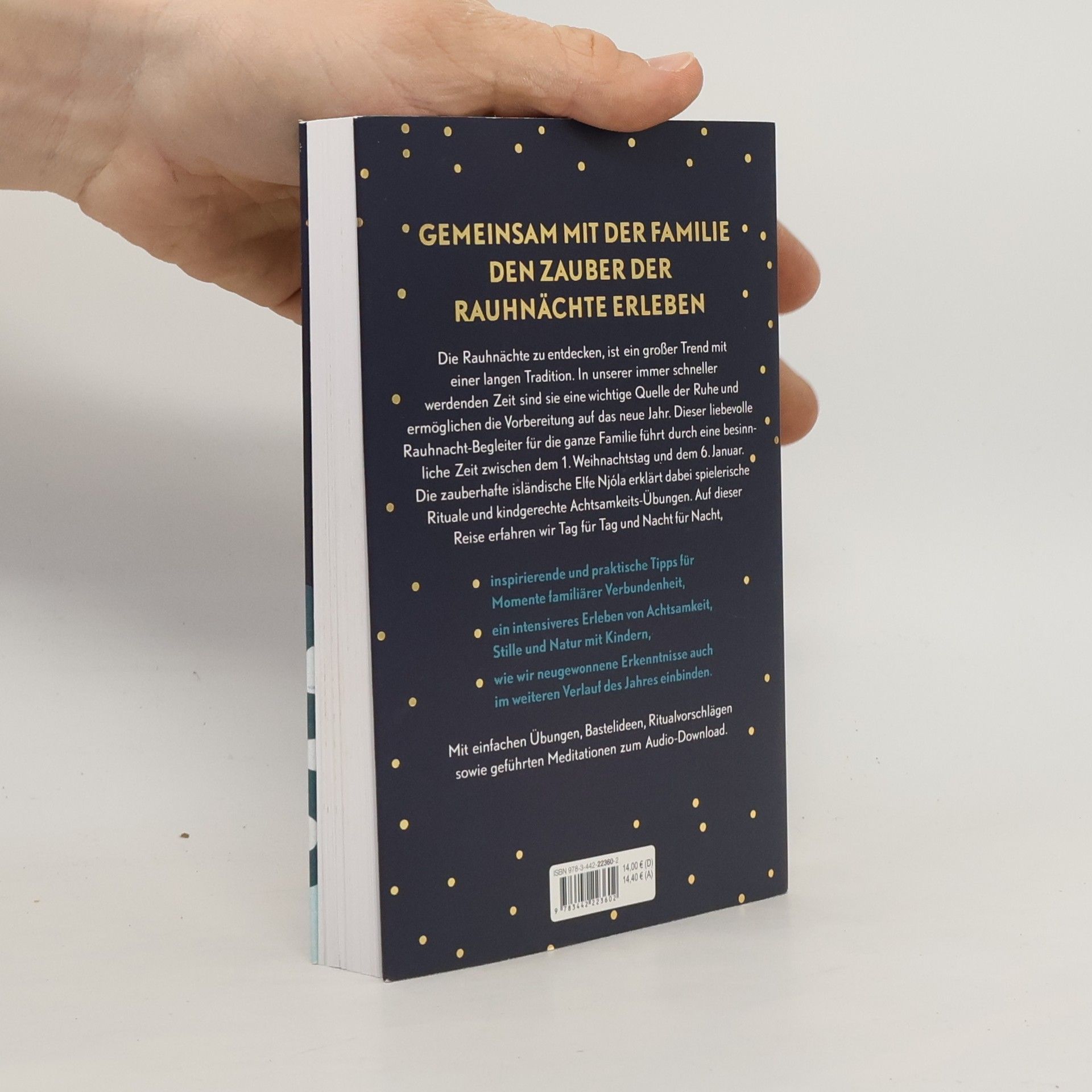 Gemeinsam mit der Familie den Zauber der Rauhnächte erleben Die magische Zeit der Rauhnächte zwischen Weihnachten und dem Dreikönigstag bewusst wahrzunehmen und mit Ritualen wie Räuchern zu begleiten, ist ein Trend mit Tradition geworden. Da in dieser Zeit meist keine Termine oder Verpflichtungen liegen und Familien traditionell beisammen sind, eignen sich die zwölf Nächte besonders gut, um gemeinsam mit den Kindern die Natur bewusst zu erleben und Momente familiärer Verbundenheit zu erschaffen. Dieser liebevolle und inspirierende Ratgeber begleitet Familien Tag für Tag und Nacht für Nacht durch die besinnliche Zeit — mit geführten Meditationen, Ritualvorschlägen und kindgerechten Tipps zur inneren Einkehr. Ausstattung: 4c Fotos und Abbildungen