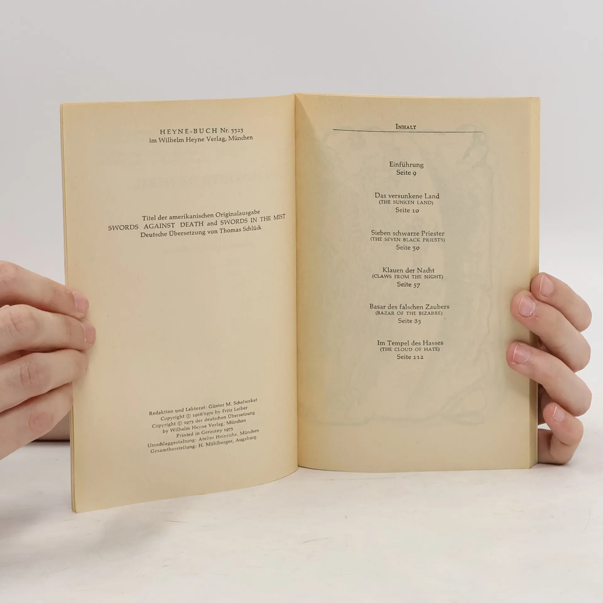 Durch Zeit und fremde Dimensionen von der Erde getrennt, träumt die alte Welt Nehwon vor sich hin - mit ihren Eisöden, Wüsten, fruchtbaren Landstrichen und stolzen Zitadellen. Nehwon - ein Tummelplatz für Piraten, wilde Reiter, freche Diebe und ränkeschmiedende Zauberer.Hier leben der Nordling Fafhrd, sieben Fuß groß und ganz in Leder gehüllt, und der Graue Mausling, von kindlicher Statur und ein Adept Weißer Magie. Das unzertrennliche Freundes paar durchstreift das Land; ihre Taten sind Legion, ihre List gilt als sprichwörtlich. Gerüchte und Sagen ranken sich um ihr Leben. Furcht ist ihnen fremd, wenn es gilt, gegen Ungeheuer,Magier, Despoten, Diebesgesindel - oder schöne Frauen anzutreten.