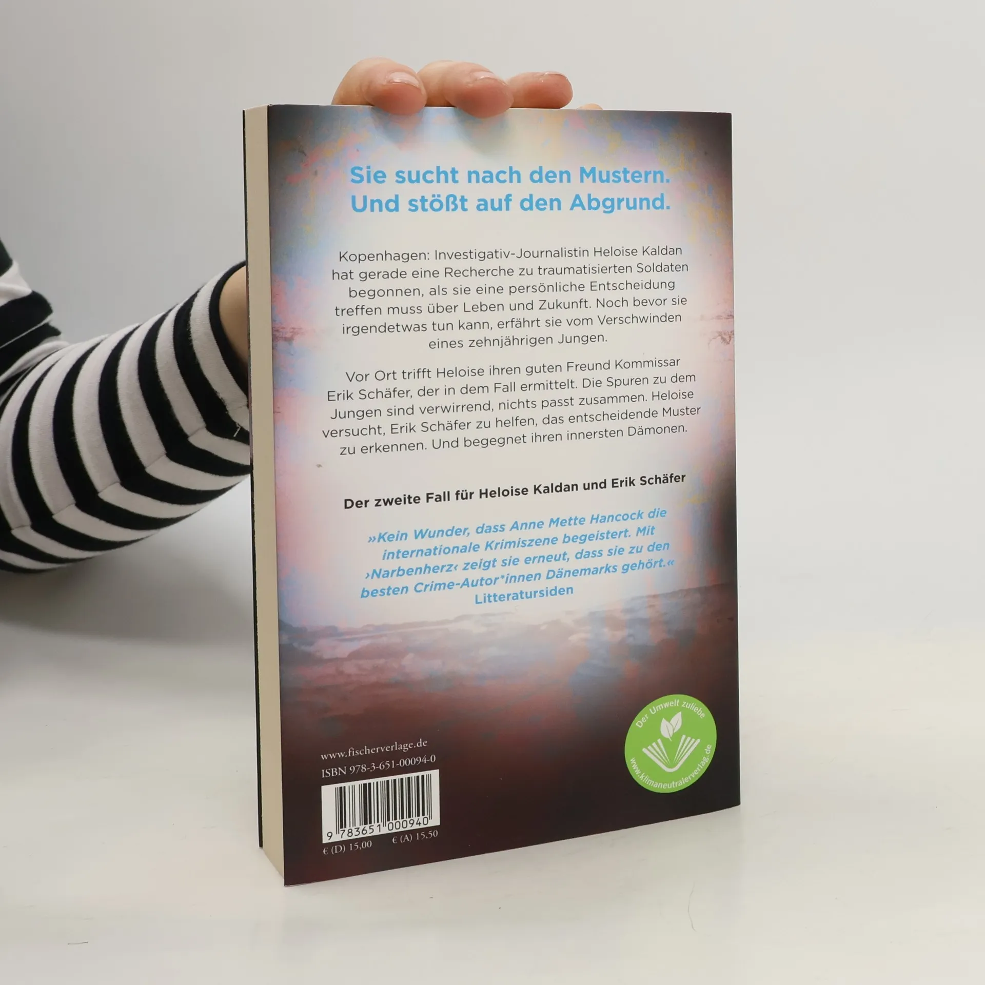 Sie sucht nach den Mustern. Und stößt auf den Abgrund. »Die beste Crime-Serie, die ich dieses Jahr gelesen habe. Fesselnd, düster und sympathisch – Kaldan und Schäfer sind mein neues Lieblings-Ermittlerduo.« Harlan Coben Kopenhagen: Investigativ-Journalistin Heloise Kaldan hat gerade eine Recherche zu traumatisierten Soldaten begonnen, als sie eine persönliche Entscheidung treffen muss über Leben und Zukunft. Noch bevor sie irgendetwas tun kann, erfährt sie vom Verschwinden eines zehnjährigen Jungen. Vor Ort trifft Heloise ihren guten Freund Kommissar Erik Schäfer, der in dem Fall ermittelt. Die Spuren zu dem Jungen sind verwirrend, nichts passt zusammen. Heloise versucht, Erik Schäfer zu helfen, das entscheidende Muster zu erkennen. Und begegnet ihren innersten Dämonen. »Kein Wunder, dass Anne Mette Hancock die internationale Krimiszene begeistert. Mit ›Narbenherz‹ zeigt sie erneut, dass sie zu den besten Crime-Autor*innen Skandinaviens gehört.« Litteratursiden Der zweite Fall für Heloise Kaldan und Erik Schäfer.