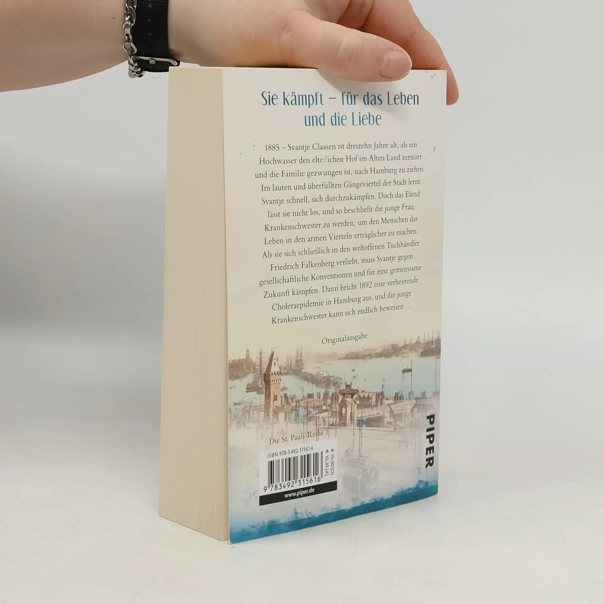 Eine junge Krankenschwester muss sich während der Cholera-Epidemie in Hamburg beweisen und kämpft um die Liebe ihres Lebens. Im Jahr 1885 wird die dreizehnjährige Svantje Claasen durch ein Hochwasser gezwungen, mit ihrer Familie nach Hamburg zu ziehen. Im überfüllten Gängeviertel lernt sie schnell, sich durchzuschlagen. Um den Menschen in den armen Vierteln zu helfen, entscheidet sich Svantje, Krankenschwester zu werden. Ihre Liebe zu dem weltoffenen Tuchhändler Friedrich Falkenberg stellt sie vor Herausforderungen, da sie gegen gesellschaftliche Konventionen ankämpfen muss. Als 1892 eine verheerende Choleraepidemie ausbricht, hat Svantje die Gelegenheit, sich zu beweisen. Die Geschichte, die von der Autorin Rebecca Maly mit dem Delia-Preis ausgezeichnet wurde, ist der erste Teil einer Trilogie, in der Svantje als starke Frau die Emanzipation verkörpert. Die Liebesgeschichte bietet große Gefühle, ein historisches Setting und eine Protagonistin, die für ihre Überzeugungen kämpft. Maly kombiniert die emotionale Handlung mit einem gut recherchierten historischen Hintergrund, der die zeitgenössischen Probleme der Charaktere greifbar macht, ohne die Spannung zu verlieren.