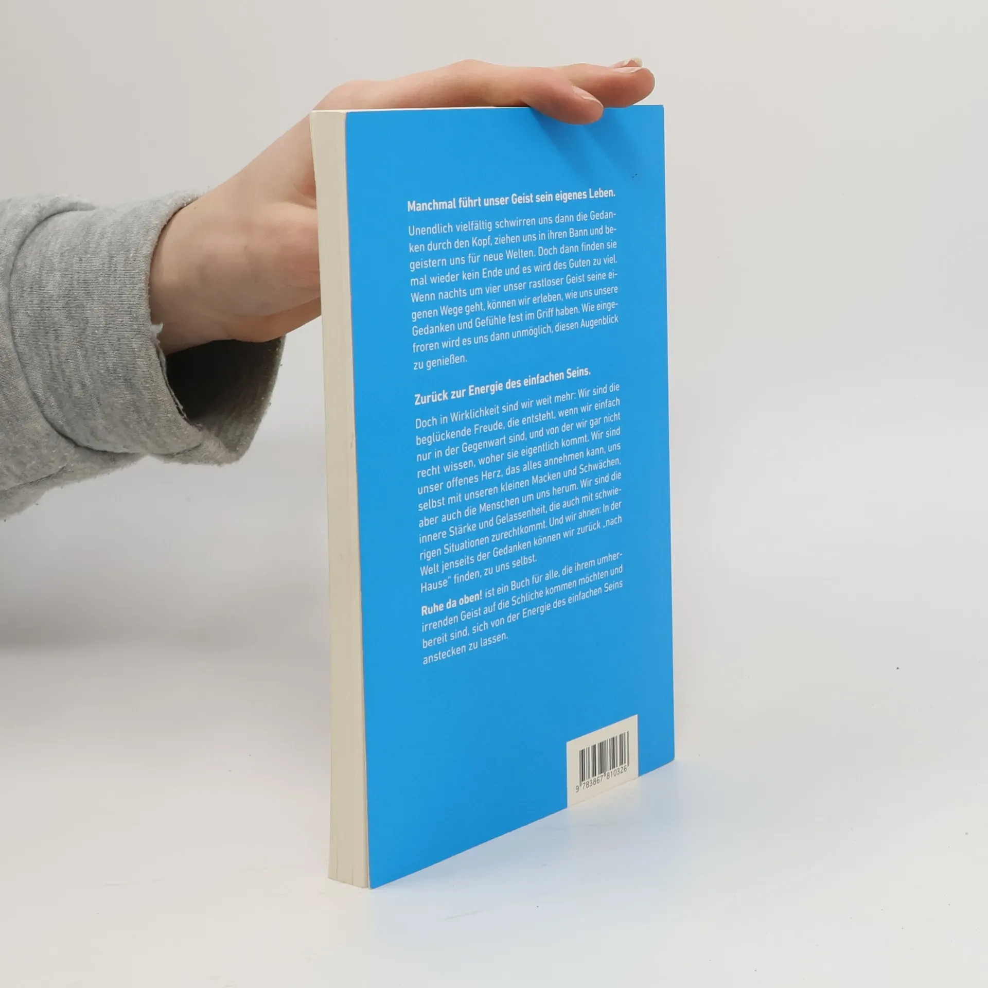 Ruhe da oben! ist ein Buch für alle, die ihrem umherirrenden Geist auf die Schliche kommen möchten und bereit sind, sich von der Energie des einfachen Seins anstecken zu lassen. Manchmal führt unser Geist sein eigenes Leben. Unendlich vielfältig schwirren uns dann die Gedanken durch den Kopf, ziehen uns in ihren Bann und begeistern uns für neue Welten. Doch dann finden sie mal wieder kein Ende und es wird des Guten zu viel. Wenn nachts um vier unser rastloser Geist seine eigenen Wege geht, können wir erleben, wie uns unsere Gedanken und Gefühle fest im Griff haben. Wie eingefroren wird es uns dann unmöglich, diesen Augenblick zu genießen. Zurück zur Energie des einfachen Seins. Doch in Wirklichkeit sind wir weit mehr: Wir sind die beglückende Freude, die entsteht, wenn wir einfach nur in der Gegenwart sind, und von der wir gar nicht recht wissen, woher sie eigentlich kommt. Wir sind unser offenes Herz, das alles annehmen kann, uns selbst mit unseren kleinen Macken und Schwächen, aber auch die Menschen um uns herum. Wir sind die innere Stärke und Gelassenheit, die auch mit schwierigen Situationen zurechtkommt. Und wir ahnen: In der Welt jenseits der Gedanken können wir zurück „nach Hause“ finden, zu uns selbst.