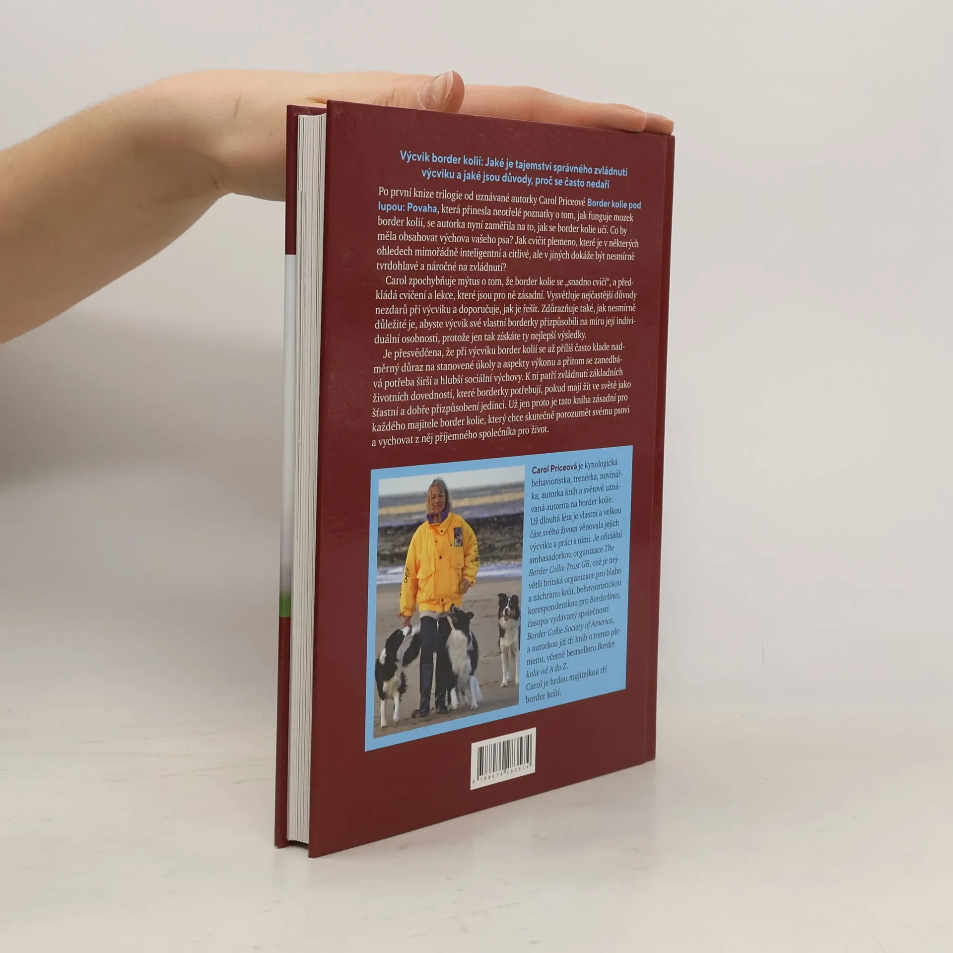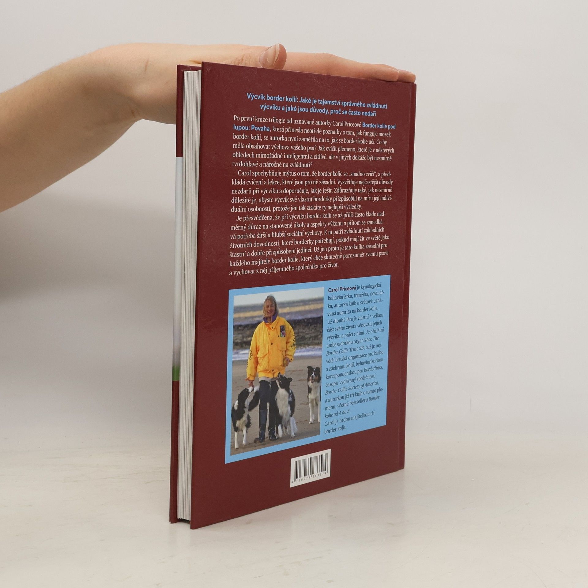 Výcvik border kolií se zaměřuje na tajemství úspěšného tréninku a důvody častých neúspěchů. Po první knize trilogie autorka, Carol Priceová, zkoumá, jak se border kolie učí. Jak by měla výchova vašeho psa vypadat? Cvičení tohoto inteligentního a citlivého plemene, které může být také tvrdohlavé, vyžaduje specifický přístup. Carol zpochybňuje mýtus o snadném výcviku border kolií a nabízí zásadní cvičení a lekce. Vysvětluje běžné příčiny nezdarů a doporučuje řešení. Důležité je přizpůsobit výcvik individuální osobnosti psa, což přináší nejlepší výsledky. Autorka zdůrazňuje, že se při výcviku často klade přílišný důraz na výkon a úkoly, zatímco se opomíjí širší sociální výchova. Ta zahrnuje základní životní dovednosti, které border kolie potřebují, aby byly šťastnými a dobře přizpůsobenými jedinci. Tato kniha je tedy nezbytná pro každého majitele border kolie, který chce lépe porozumět svému psu a vychovat z něj příjemného společníka. Carol Priceová je uznávaná kynologická behavioristka a trenérka, která se dlouhá léta věnuje výcviku border kolií. Je ambasadorkou The Border Collie Trust GB a autorkou několika knih o tomto plemeni. Je hrdou majitelkou tří border kolií.