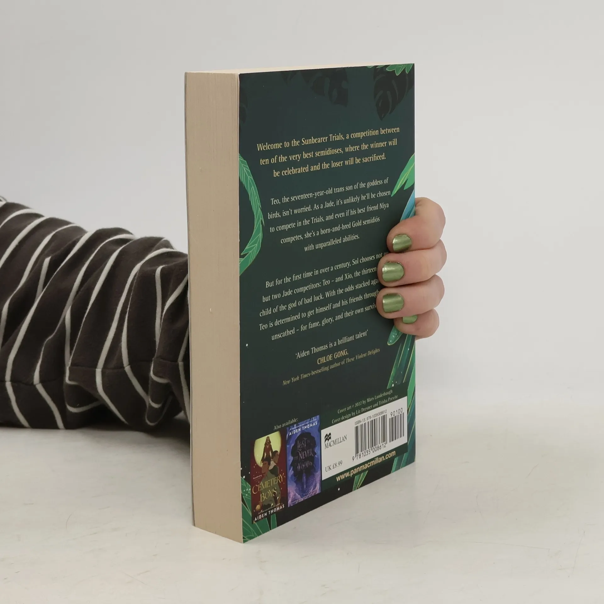 Welcome to The Sunbearer Trials, where ten semidioses compete in a series of challenges with the highest of stakes in this breathtaking, Mexican-inspired fantasy from Aiden Thomas, the author of the New York Times-bestselling Cemetery Boys. Only the most powerful and honorable will be chosen. Teo, the seventeen-year-old trans son of the goddess of birds, isn't worried. As a Jade, it's unlikely he'll be chosen to compete in the Trials, and even if his best friend Niya competes, she's a born-and-bred Gold semidiós with unparalleled abilities. But for the first time in over a century, Sol chooses not one, but two Jade competitors: Teo - and Xio, the thirteen-year-old child of the god of bad luck. With the odds stacked against them, Teo is determined to get himself and his friends through the trials unscathed - for fame, glory, and their own survival . . .