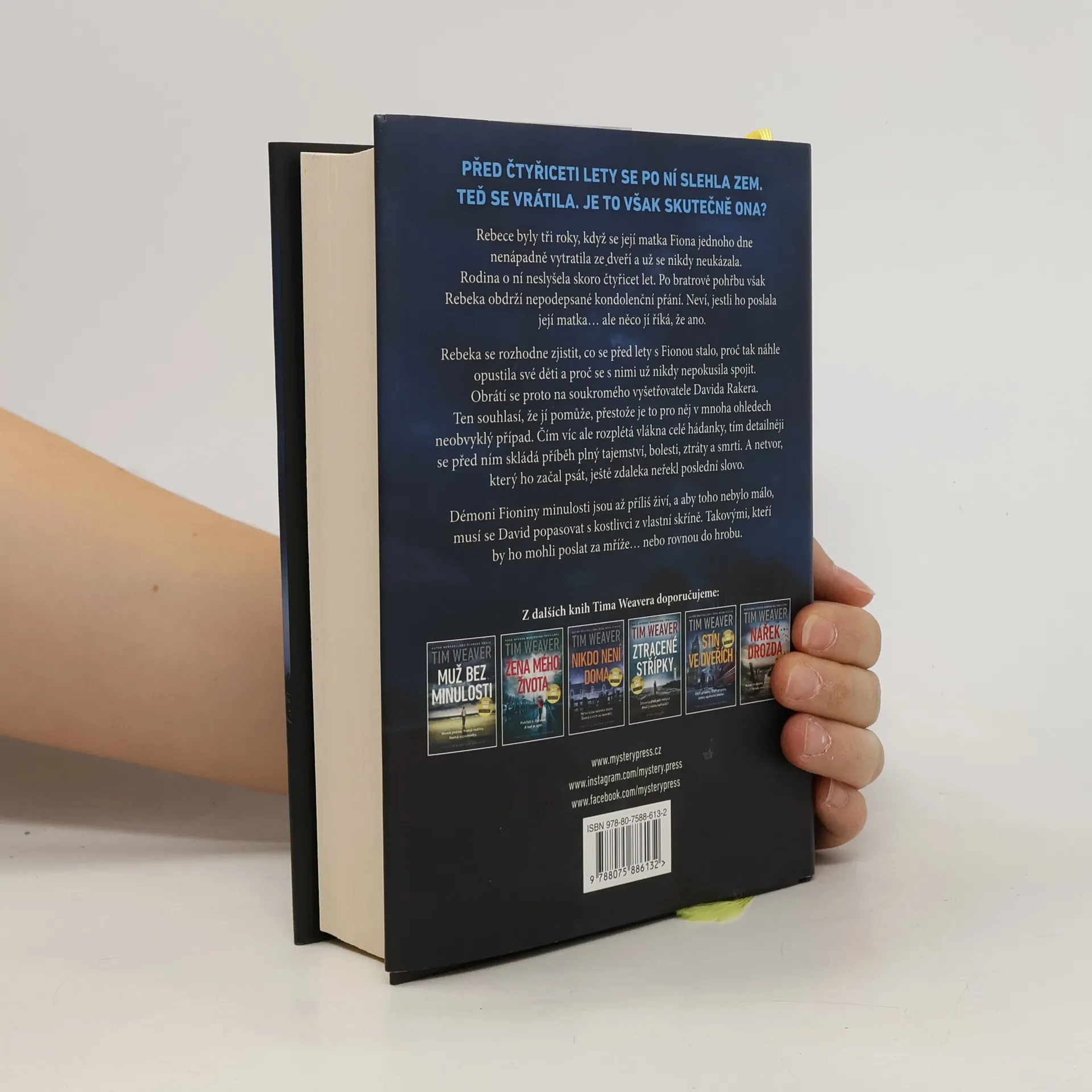 PŘED ČTYŘICETI LETY SE PO NÍ SLEHLA ZEM. TEĎ SE VRÁTILA. JE TO VŠAK SKUTEČNĚ ONA? Rebece byly tři roky, když se její matka Fiona jednoho dne nenápadně vytratila ze dveří a už se nikdy neukázala. Rodina o ní neslyšela skoro čtyřicet let. Po bratrově pohřbu však Rebeka obdrží nepodepsané kondolenční přání. Neví, jestli ho poslala její matka… ale něco jí říká, že ano. Rebeka se rozhodne zjistit, co se před lety s Fionou stalo, proč tak náhle opustila své děti a proč se s nimi už nikdy nepokusila spojit. Obrátí se proto na soukromého vyšetřovatele Davida Rakera. Ten souhlasí, že jí pomůže, přestože je to pro něj v mnoha ohledech neobvyklý případ. Čím víc ale rozplétá vlákna celé hádanky, tím detailněji se před ním skládá příběh plný tajemství, bolesti, ztráty a smrti. A netvor, který ho začal psát, ještě zdaleka neřekl poslední slovo. Démoni Fioniny minulosti jsou až příliš živí, a aby toho nebylo málo, musí se David popasovat s kostlivci z vlastní skříně. Takovými, kteří by ho mohli poslat za mříže… nebo rovnou do hrobu.