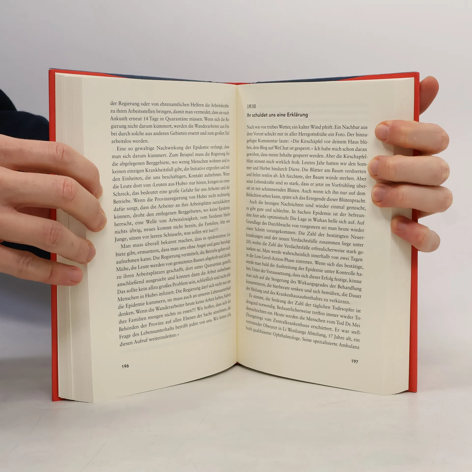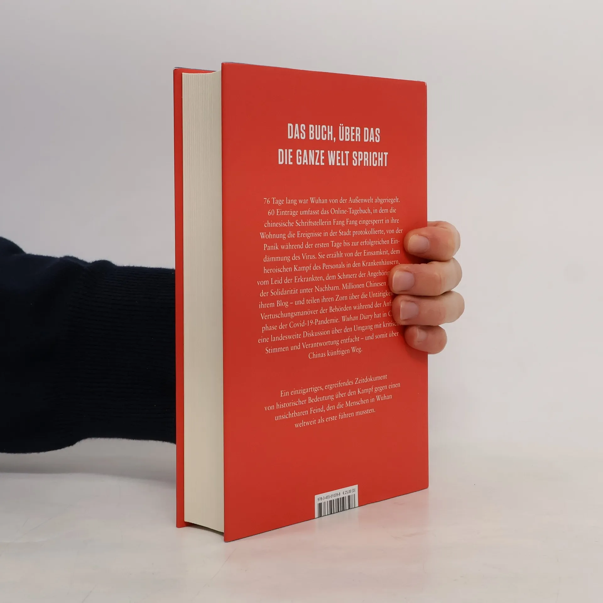 Das Tagebuch der berühmten chinesischen Schriftstellerin Fang Fang aus einer abgeriegelten Stadt ist ein einzigartiges, ergreifendes Zeitdokument über den Kampf gegen einen unsichtbaren Feind, den die Menschen in Wuhan weltweit als erste führten. Am 25. Januar, zwei Tage nach der Abriegelung der 9-Millionen-Einwohner-Stadt, beginnt Fang Fang, online Tagebuch zu schreiben. Eingeschlossen in ihrer Wohnung berichtet sie von der Katastrophe, von der Panik zu Beginn der Covid-19-Epidemie bis zu ihrer Eindämmung. Sie erzählt von Einsamkeit, dem heroischen Einsatz des Krankenhauspersonals, dem Leid der Erkrankten und dem Schmerz der Angehörigen sowie der Solidarität unter Nachbarn. Millionen Chinesen folgen ihren Gedanken und Geschichten aus dem unmöglichen Alltag – vom Zorn über die Untätigkeit und Vertuschungsversuche der Behörden bis zur Anerkennung der späteren Maßnahmen der Regierung. Fang Fang bietet einen unverstellten Blick auf die Katastrophe „von unten“, nah an den Menschen, ihren Ängsten, Nöten, kleinen Freuden und dem besonderen Wuhaner Humor selbst in dunklen Zeiten. Ihr Tagebuch wird zudem zum Gegenstand erbitterter Auseinandersetzungen über kritische Stimmen und Verantwortung in China und dessen künftigen Weg. „Als Zeugen, die die tragischen Tage von Wuhan miterlebt haben, sind wir verpflichtet, für diejenigen Gerechtigkeit einzufordern, die gestorben sind.“ - Fang Fang