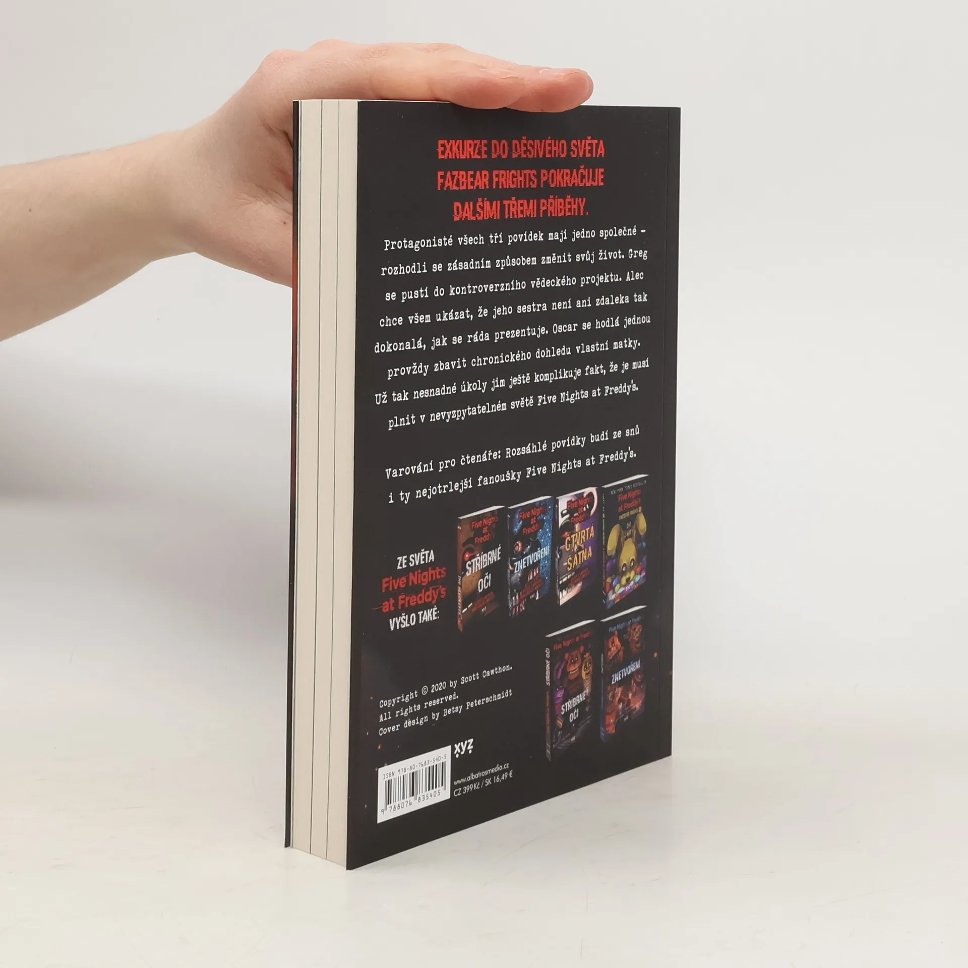 Exkurze do děsivého světa Fazbear Frights pokračuje dalšími třemi příběhy. Greg, Alec a Oscar už toho mají dost – po letech plných příkoří se rozhodli zcela změnit svůj život. Greg se pustí do více než kontroverzního experimentu. Alec hodlá před světem odhalit, že jeho sestra není tak dokonalá, jak si všichni myslí. A Oscar se chce jednou provždy zbavit obsesivního dohledu své matky. Už tak nesnadné úkoly jim ještě komplikuje fakt, že je musí plnit v nevyzpytatelném světě Five Nights at Freddys. Varování pro čtenáře: Rozsáhlé povídky budí ze snů i ty nejotrlejší fanoušky Five Nights at Freddys.
