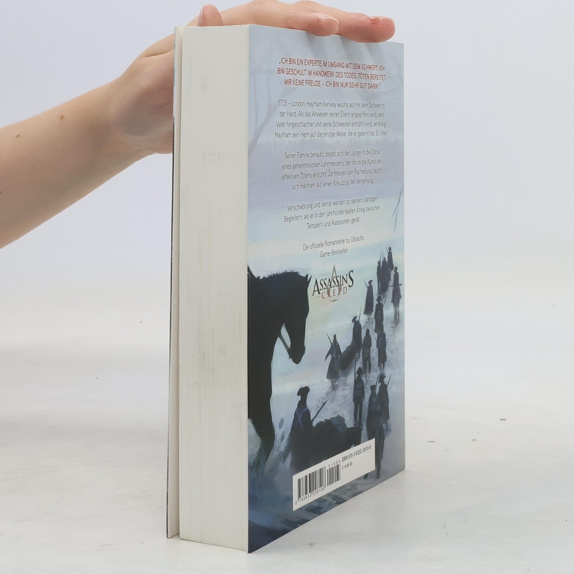 „ICH BIN EIN EXPERTE IM UMGANG MIT DEM SCHWERT. ICH BIN GESCHULT IM HANDWERK DES TODES. TÖTEN BEREITET MIR KEINE FREUDE – ICH BIN NUR SEHR GUT DARIN.“ 1735 – London. Haytham Kenway wuchs auf mit dem Schwert in der Hand. Als das Anwesen seiner Eltern angegriffen wird, sein Vater hingeschlachtet und seine Schwester entführt wird, verteidigt Haytham sein Heim auf die einzige Weise, die er gelernt hat: Er tötet. Seiner Familie beraubt, begibt sich der Junge in die Obhut eines geheimnisvollen Lehrmeisters, der ihn in die Kunst des effektiven Tötens einführt. Zerfressen von Rachedurst begibt sich Haytham auf einen Kreuzzug der Vergeltung. Verschwörung und Verrat werden zu seinen ständigen Begleitern, als er in den jahrhundertealten Krieg zwischen Templern und Assassinen gerät.