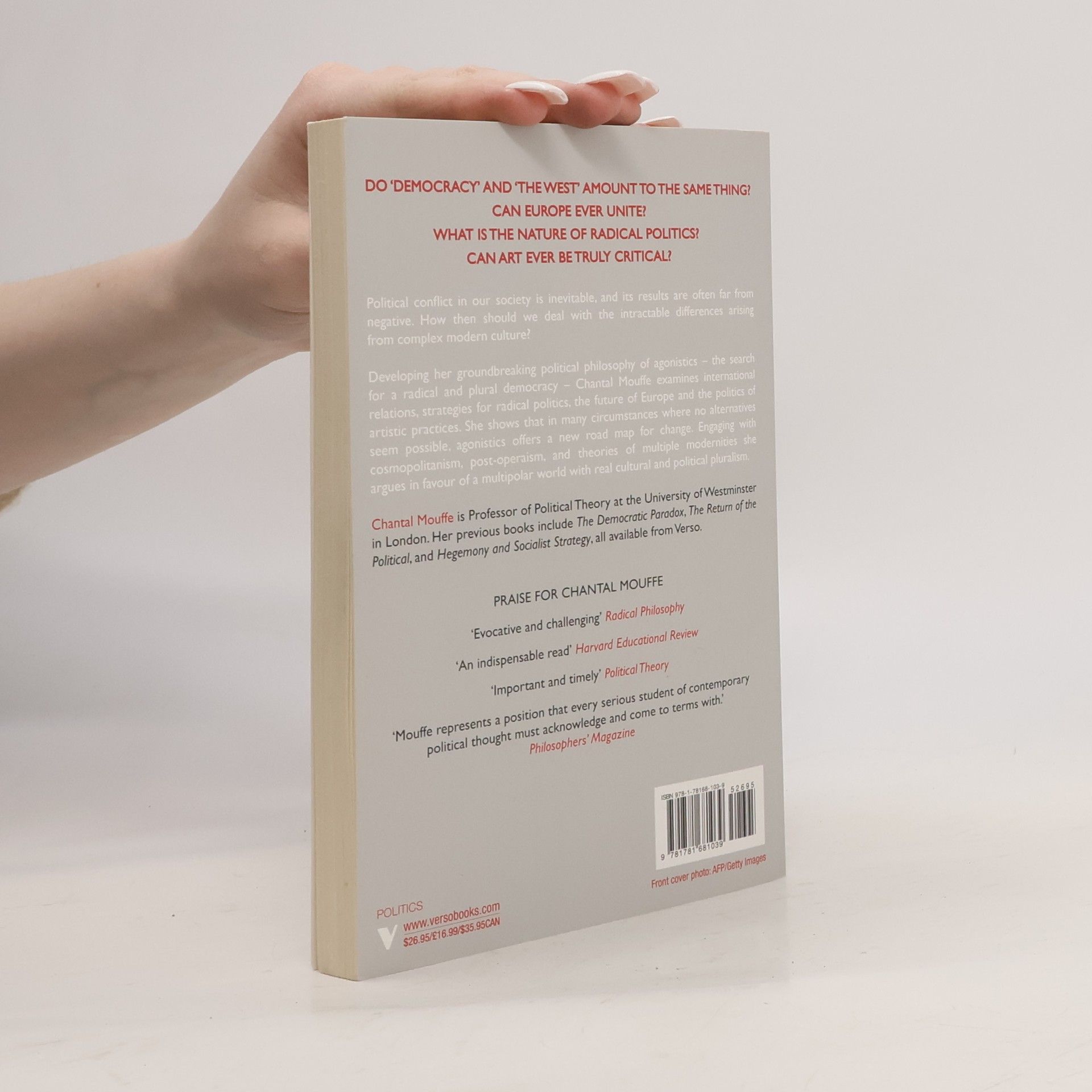 Political conflict in our society is inevitable, and the results are often far from negative. How then should we deal with the intractable differences arising from complex modern culture?In Agonistics , Mouffe develops her philosophy, taking particular interest in international relations, strategies for radical politics and the politics of artistic practices. In a series of coruscating essays, she engages with cosmopolitanism, post-operaism, and theories of multiple modernities to argue in favor of a multipolar world with a real cultural and political pluralism.