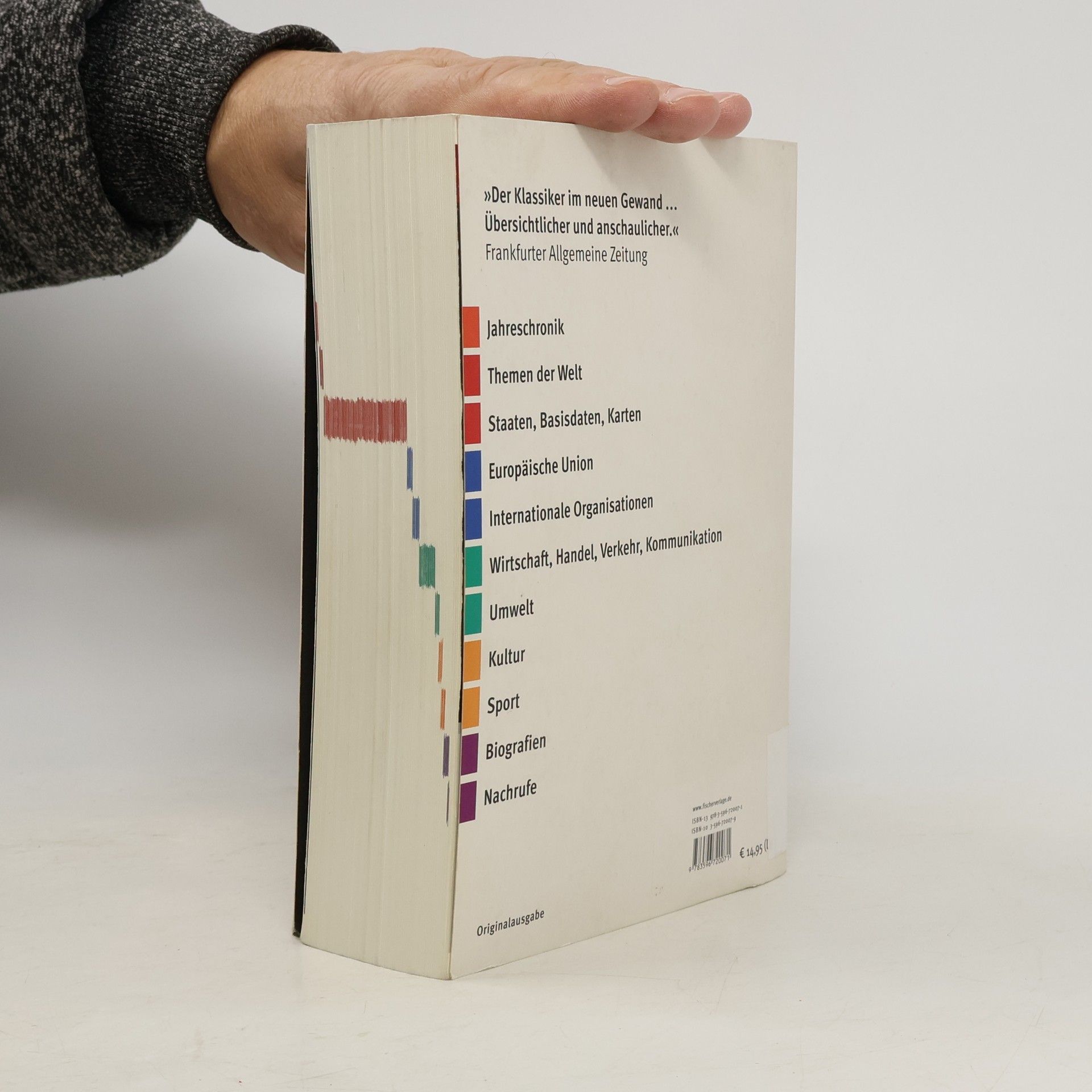 Genauigkeit, Sachlichkeit und Aktualität zeichnen den Fischer Weltalmanach seit 47 Jahren aus und machen ihn zu einem 'Klassiker der enzyklopädischen Kategorie' (FAZ). Alljährlich auf den neuesten Stand gebracht, liefert das Buch zu allen 193 Staaten der Erde die wichtigsten Zahlen, Daten, Fakten und Hintergrundinformationen aus Politik, Wirtschaft, Umwelt, Kultur und Sport. Zahlreiche farbige Karten, Tabellen, Grafiken und Fotos tragen zur Veranschaulichung bei, Stichworte und Hintergrundberichte erleichtern das Verständnis politischer Entwicklungen und befassen sich mit in der Öffentlichkeit viel diskutierten Problemen. Das in den vergangenen Jahrzehnten immer wieder überarbeitete und um neue Kapitel erweiterte Jahrbuch ist nicht nur eine Ergänzung zu jedem Lexikon, sondern auch als eigenständiges Nachschlagewerk für politisch interessierte Leser unentbehrlich.