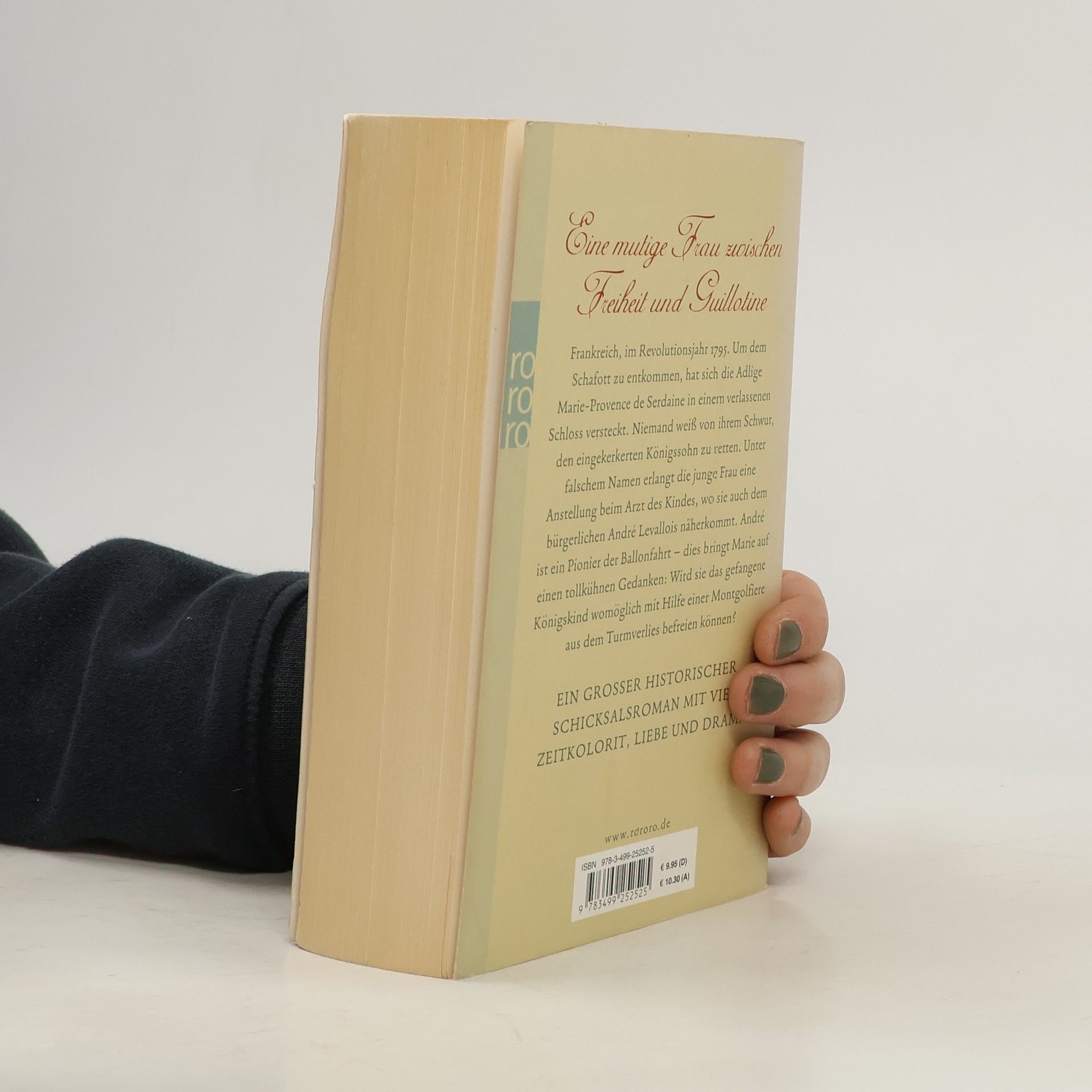 Eine mutige Frau zwischen Freiheit und Guillotine Frankreich, im Revolutionsjahr 1795. Um dem Schafott zu entkommen, hat sich die Adlige Marie-Provence de Serdaine in einem verlassenen Schloss versteckt. Niemand weiß von ihrem Schwur, den eingekerkerten Königssohn zu retten. Unter falschem Namen erlangt die junge Frau eine Anstellung beim Arzt des Kindes, wo sie auch dem bürgerlichen André Levallois näherkommt. André ist ein Pionier der Ballonfahrt – dies bringt Marie auf einen tollkühnen Gedanken: Wird sie das gefangene Königskind womöglich mit Hilfe einer Montgolfiere aus dem Turmverlies befreien können? EIN GROSSER HISTORISCHER SCHICKSALSROMAN MIT VIEL ZEITKOLORIT, LIEBE UND DRAMA