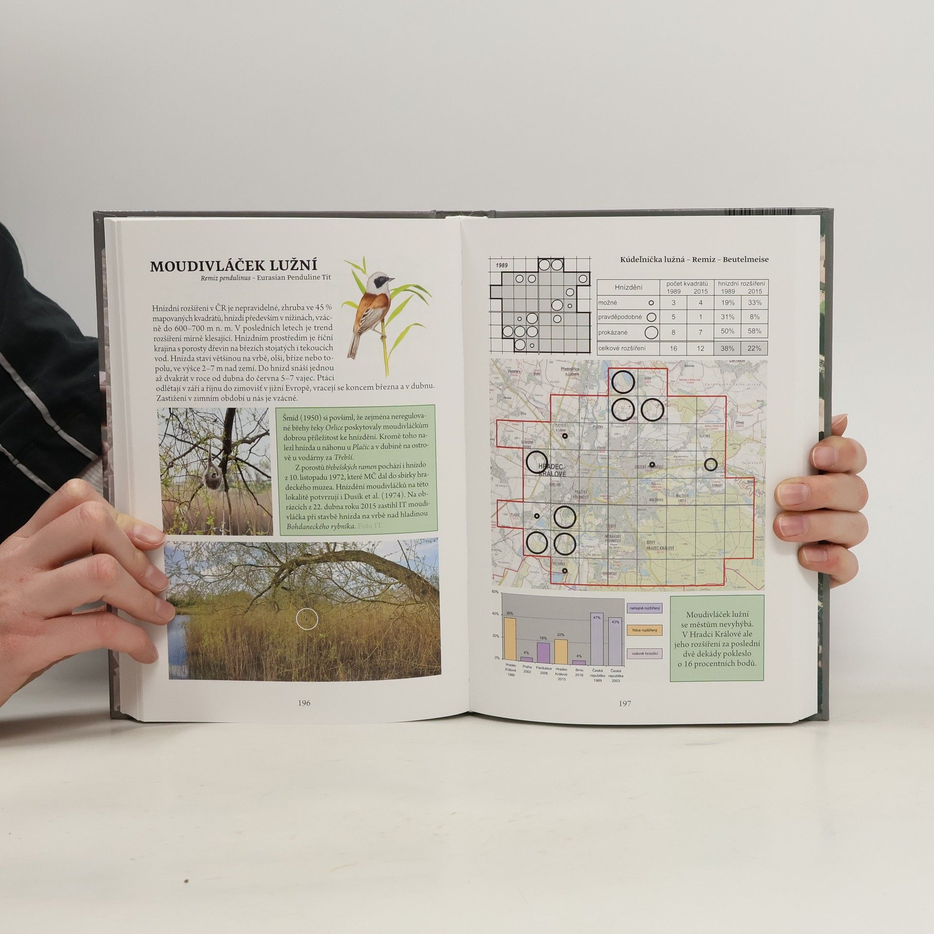 Kniha o ptácích Hradce Králové je prvním souborným zpracováním informací o ptactvu města. V letech 1985-1989 a opět v letech 2009-2015 zde byl prováděn kolektivní ornitologický výzkum mapování hnízdního rozšíření ptáků. Získaný jedinečný soubor dat umožňuje zdokumentovat vývoj avifauny na území města za poslední zhruba čtvrtstoletí, kdy také samo město prošlo velkou proměnou. Každý pozorovaný ptačí druh je v knize samostatně zpracován, autoři shrnuli historické i současné zprávy o jeho výskytu, přidali mapky rozšíření a fotografie obývaného prostředí v Hradci Králové. V dalších kapitolách je popisována biologie ptáků v městském prostředí, historie ornitologie, ochrana ptáků a vývoj prostředí v Hradci Králové, úplná ornitologická bibliografie, seznam všech pozorovaných druhů ptáků a řada dalších doprovodných údajů. Kniha je určena mnoha různým čtenářům: milovníkům přírody, kteří se zajímají o život ptáků, ornitologům, pro které je dokumentem o rozšíření jednotlivých druhů, ochráncům přírody, kterým může být vodítkem pro ochranná opatření, a obecně všem, kteří mají zájem dovědět se více o našich opeřených spoluobyvatelích.