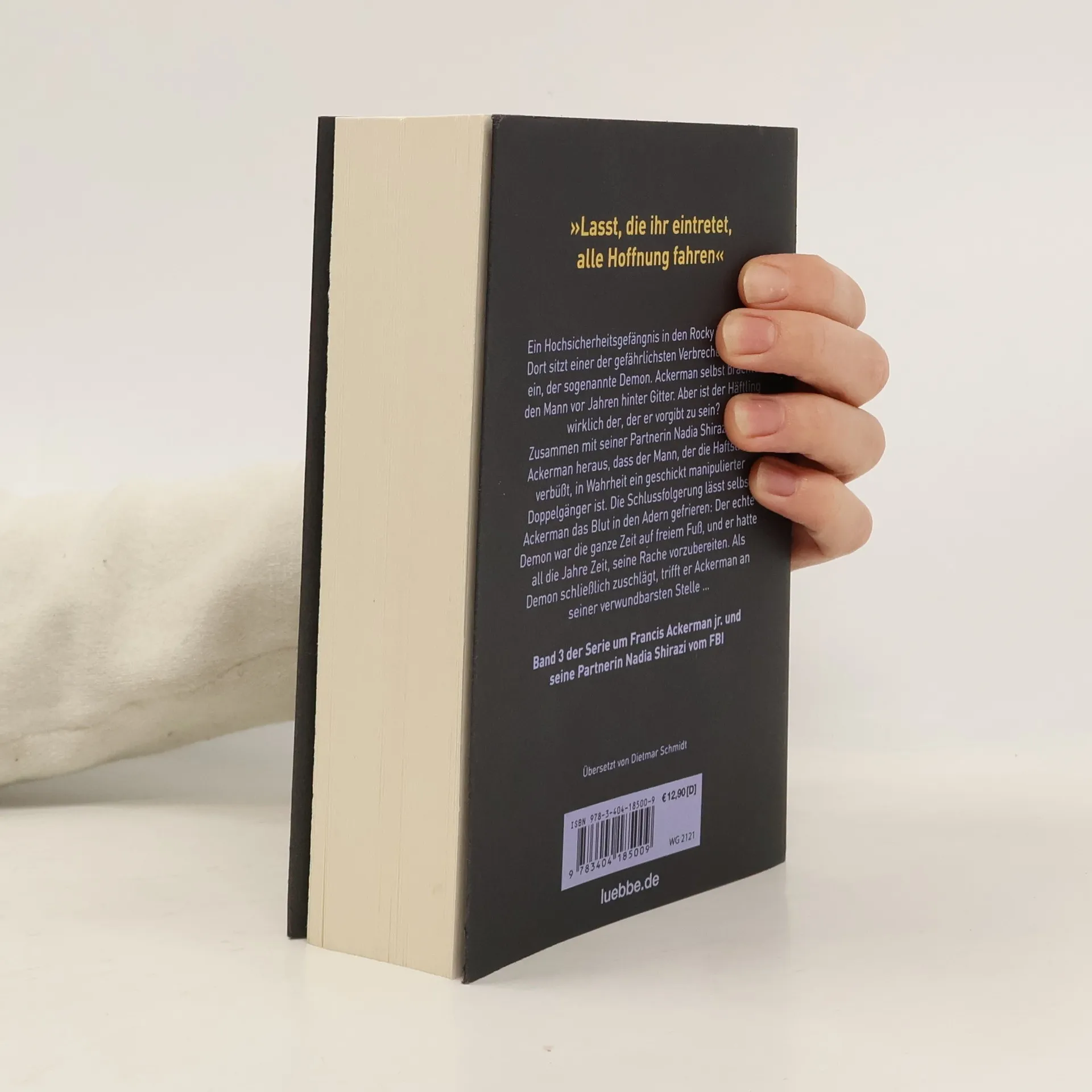"Lasst, die ihr eintretet, alle Hoffnung fahren" Ein Hochsicherheitsgefängnis in den Rocky Mountains. Dort sitzt einer der gefährlichsten Verbrecher der Welt ein, der sogenannte Demon. Ackerman selbst brachte den Mann vor Jahren hinter Gitter. Aber ist der Häftling wirklich der, der er vorgibt zu sein? Zusammen mit seiner Partnerin Nadia Shirazi findet Ackerman heraus, dass der Mann, der die Haftstrafe verbüßt, in Wahrheit ein geschickt manipulierter Doppelgänger ist. Die Schlussfolgerung lässt selbst Ackerman das Blut in den Adern gefrieren: Denn der echte Demon war die ganze Zeit auf freiem Fuß, und er hatte all die Jahre Zeit, seine Rache vorzubereiten. Als Demon schließlich zuschlägt, trifft er Ackerman an seiner verwundbarsten Stelle ...