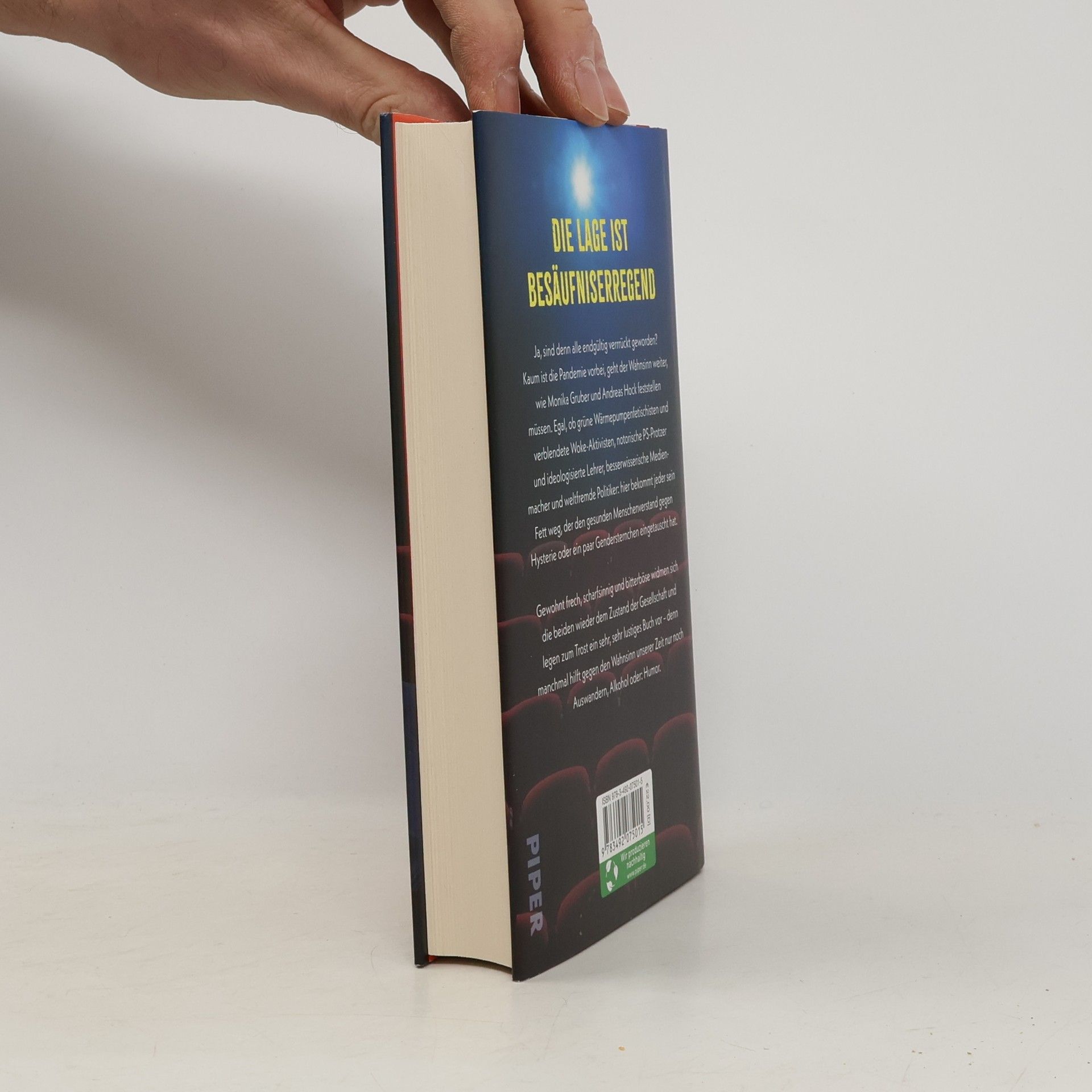 Ja, sind denn alle endgültig verrückt geworden? Kaum ist die Pandemie vorbei, geht der Wahnsinn weiter , wie Monika Gruber und Andreas Hock feststellen müssen. Egal, ob grüne Wärmepumpenfetischisten oder notorische PS-Protzer, verblendete Woke-Aktivisten oder ideologisierte Lehrer, besserwisserische Medienmacher und weltfremde Politiker: hier bekommt jeder sein Fett weg , der den gesunden Menschenverstand gegen Hysterie oder ein paar Gendersternchen eingetauscht hat. Gewohnt frech, scharfsinnig und bitterböse widmen sich die beiden wieder dem Zustand der Gesellschaft und legen zum Trost ein sehr, sehr lustiges Buch vor – denn manchmal hilft gegen den Wahnsinn unserer Zeit nur noch Auswandern, Alkohol oder: Humor. Pressestimmen zu »Und erlöse uns von den Blöden« »Ein kleines böses Buch zur Lage der Nation. Und zugleich eine Impfung gegen Hysterie und Panikmache.« Stern »Ein echtes Lesevergnügen, das nur die nicht komisch finden werden, die verlernt haben, über sich selbst zu lachen.« Münchner Merkur »Ein lustiger, kluger Appell für endlich mehr Miteinander.« Focus »Ein Kracher!« Frau im Spiegel
