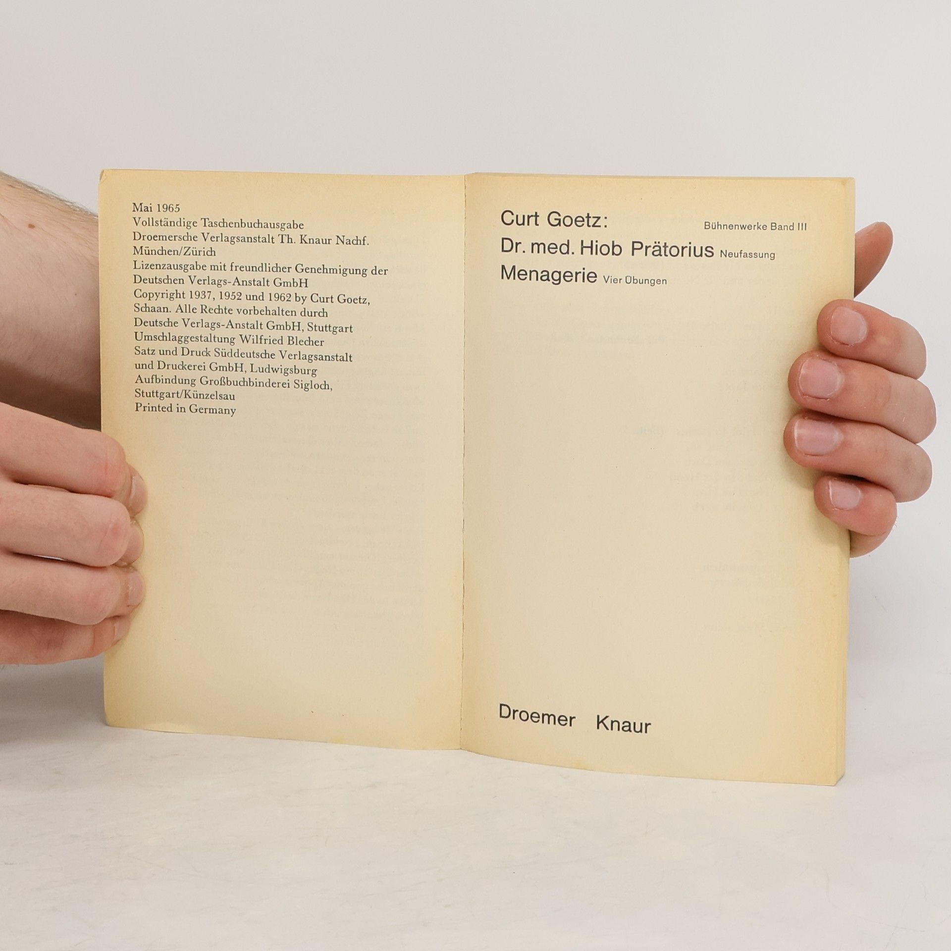 Dr. med. Hiob Prätorius Menagerie, vier Einakter. Bühnenwerke Band III, Curt Goetz