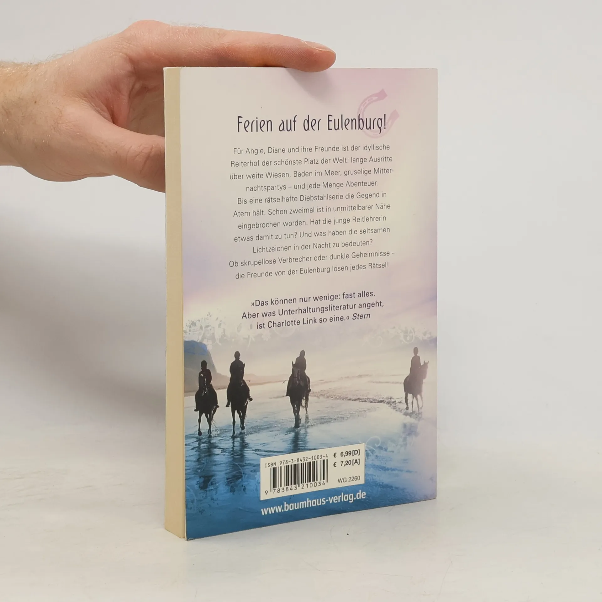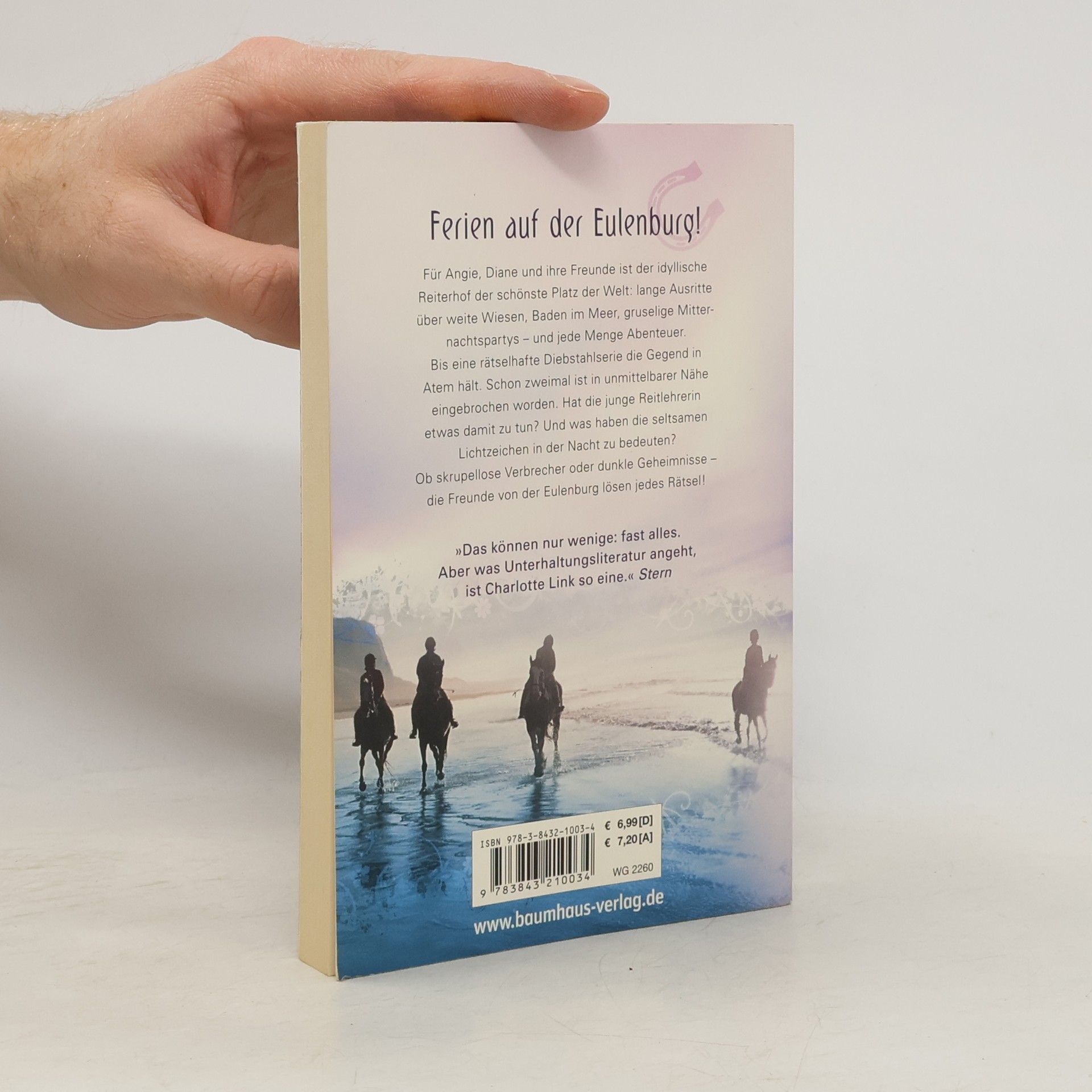 Für Angie, Diane und ihre Freunde ist der idyllische Reiterhof der schönste Platz der Welt: lange Ausritte über weite Wiesen, Baden im Meer, gruselige Mitternachtspartys und jede Menge Abenteuer. Bis eine rätselhafte Diebstahlserie die Gegen in Atem hält. Hat die junge Reitlehrerin etwas damit zu tun? Und was haben die seltsamen Lichtzeichen in der Nacht zu bedeuten? Ob skrupellose Verbrecher oder dunkle Geheimnisse - die Freunde von der Eulenburg lösen jedes Rätsel!