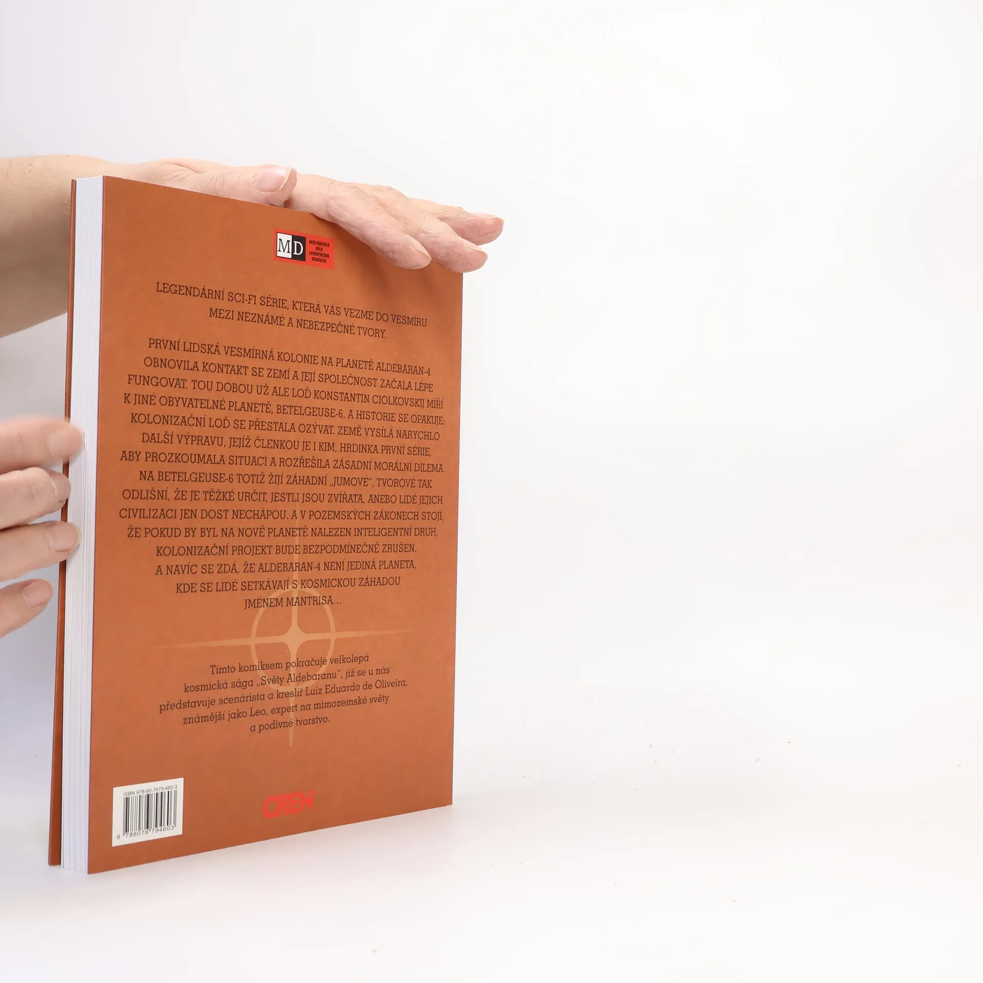 Legendární sci-fi série, která vás vezme do vesmíru mezi neznámé a nebezpečné tvory. První lidská vesmírná kolonie na planetě Aldebaran-4 obnovila kontakt se Zemí a její společnost začala lépe fungovat. Tou dobou už ale loď Konstantin Ciolkovskij míří k jiné obyvatelné planetě, Betelgeuse-6. A historie se opakuje: kolonizační loď se přestala ozývat. Země vysílá narychlo další výpravu, jejíž členkou je i Kim, hrdinka první série, aby prozkoumala situaci a rozřešila zásadní morální dilema. Na Betelgeuse-6 totiž žijí záhadní „jumové“, tvorové tak odlišní, že je těžké určit, jestli jsou zvířata, anebo lidé jejich civilizaci jen dost nechápou. A v pozemských zákonech stojí, že pokud by byl na nové planetě nalezen inteligentní druh, kolonizační projekt bude bezpodmínečně zrušen. A navíc se zdá, že Aldebaran-4 není jediná planeta, kde se lidé setkávají s kosmickou záhadou jménem mantrisa Tímto komiksem pokračuje velkolepá kosmická sága „Světy Aldebaranu“, jíž se u nás představuje scenárista a kreslíř Luiz Eduardo Oliveira, známější jako Leo, expert na mimozemské světy a podivné tvorstvo.