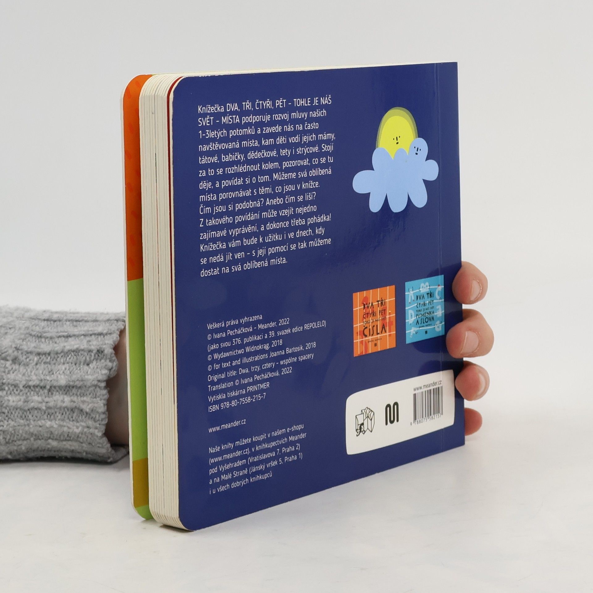 Obrázková knížka s pevnými listy podporující rozvoj řeči. Zavede čtenáře na často navštěvovaná místa, kam děti vodí rodiče i prarodiče.