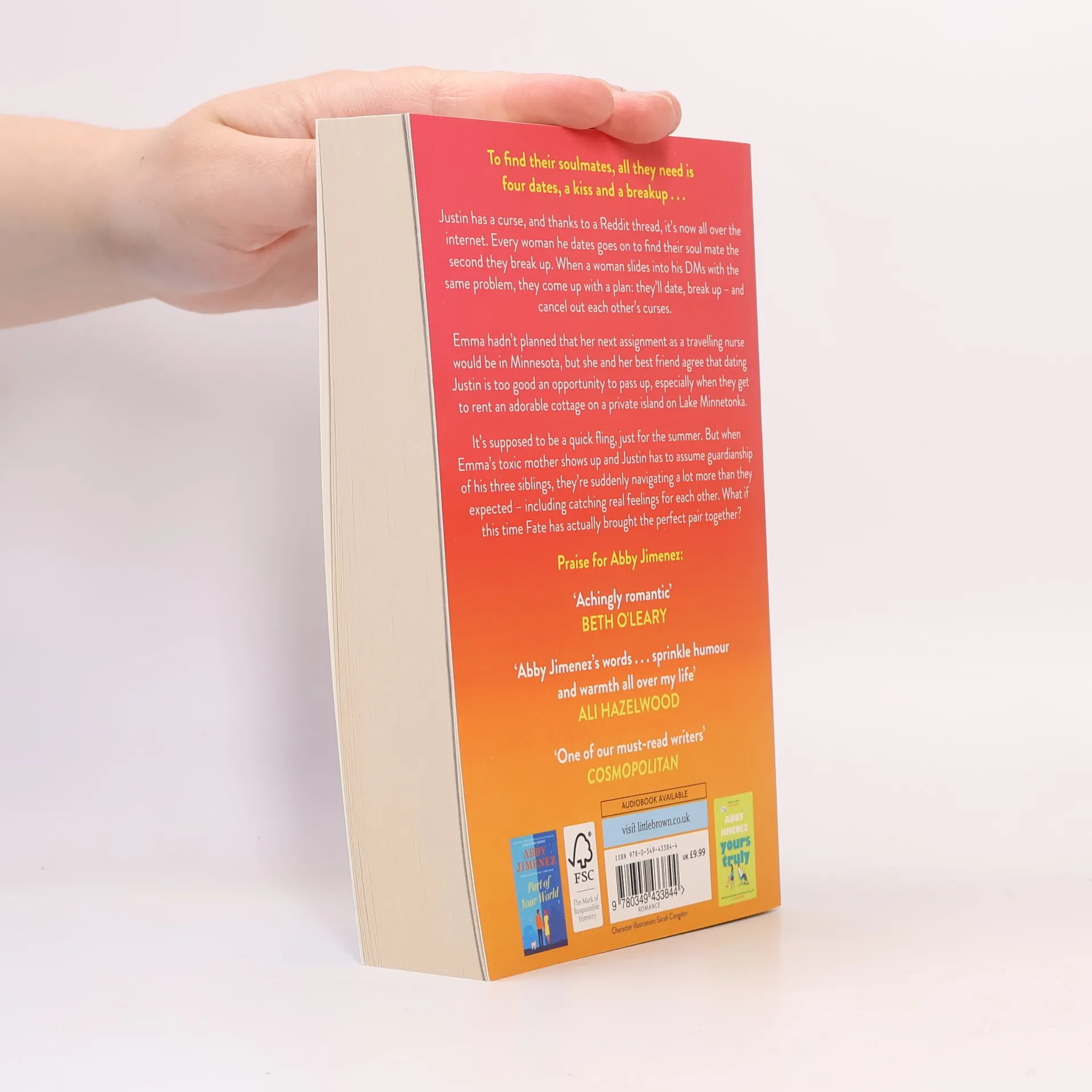 To find their soulmates, all they need is four dates, a kiss and a breakup . . . Justin has a curse, and thanks to a Reddit thread, it's now all over the internet. Every woman he dates goes on to find their soul mate the second they break up. When a woman slides into his DMs with the same problem, they come up with a plan: They'll date each other and break up. Their curses will cancel each other's out, and they'll both go on to find the love of their lives. It's a bonkers idea . . . and it just might work. Emma hadn't planned that her next assignment as a traveling nurse would be in Minnesota, but she and her best friend agree that dating Justin is too good of an opportunity to pass up, especially when they get to rent an adorable cottage on a private island on Lake Minnetonka. It's supposed to be a quick fling, just for the summer. But when Emma's toxic mother shows up and Justin has to assume guardianship of his three siblings, they're suddenly navigating a lot more than they expected - including catching real feelings for each other. What if this time Fate has actually brought the perfect pair together?