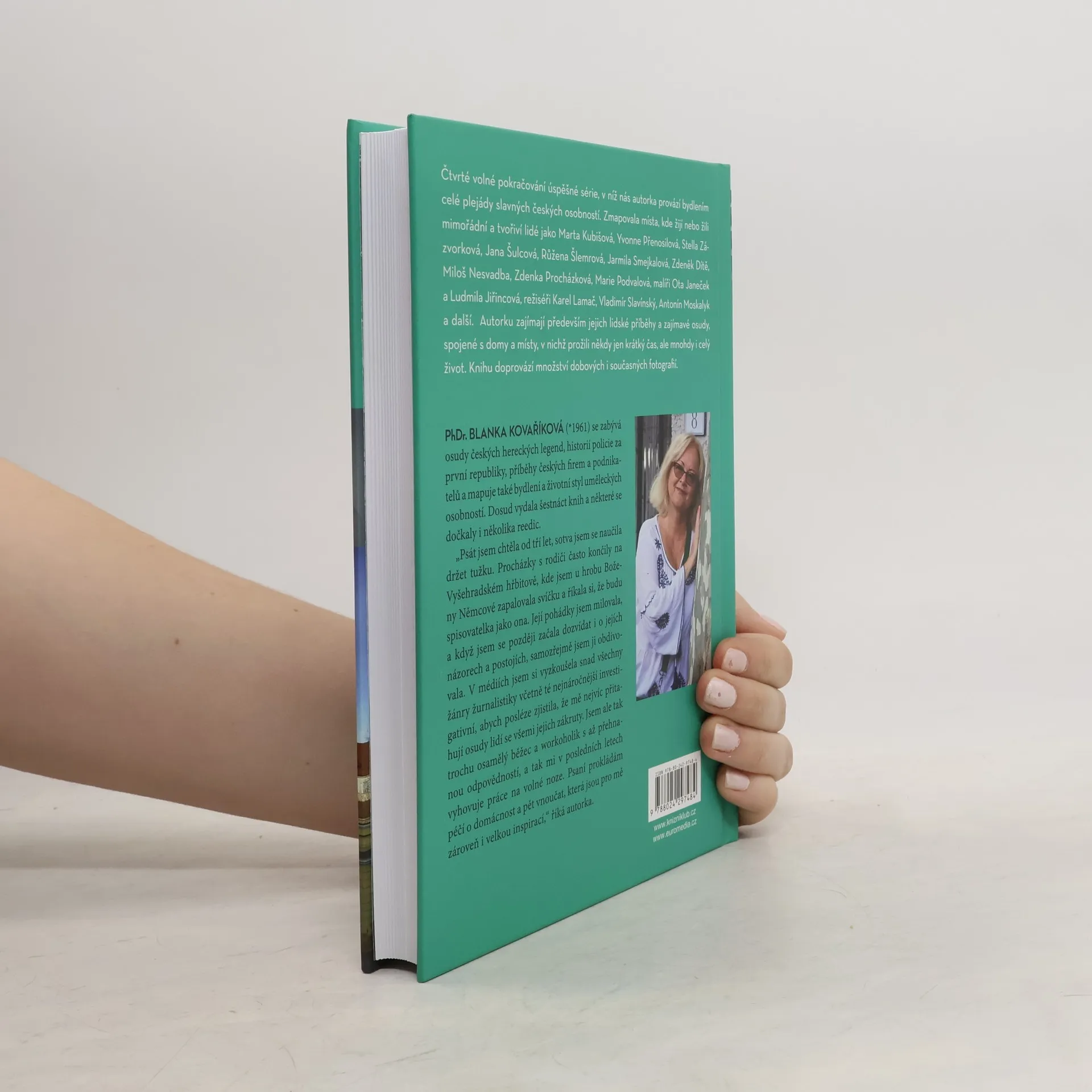 Čtvrté volné pokračování úspěšné série, v níž nás autorka provází bydlením celé plejády slavných českých osobností. Zmapovala místa, kde žijí nebo žili mimořádní a tvořiví lidé jako Marta Kubišová, Yvonne Přenosilová, Stella Zázvorková, Jana Šulcová, Růžena Šlemrová, Jarmila Smejkalová, Zdeněk Dítě, Miloš Nesvadba, Zdenka Procházková, Marie Podvalová, malíři Ota Janeček a Ludmila Jiřincová, režiséři Karel Lamač, Vladimír Slavínský, Antonín Moskalyk a další. Autorku zajímají především jejich lidské příběhy a zajímavé osudy, spojené s domy a místy, v nichž prožili někdy jen krátký čas, ale mnohdy i celý život. Knihu doprovází množství dobových i současných fotografií.