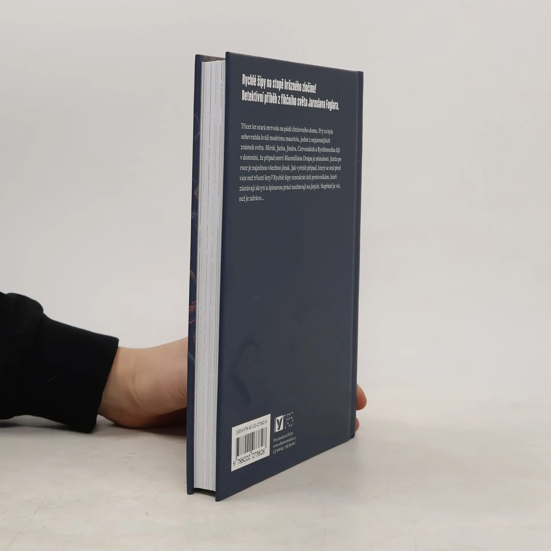 Detektivní dobrodružství, ve kterém se Rychlé šípy vrací k záhadě smrti Maxmiliána Drápa. Třicet let stará mrtvola na půdě činžovního domu. Sebevražda kvůli nesmírně cenné známce, Modrému mauritiu. Mirek, Jarka, Jindra, Červenáček a Rychlonožka žijí v domnění, že případ smrti Maxmiliána Drápa je minulostí. Jenže po roce je najednou všechno jinak. Co když to byla vražda? A je vůbec možné vyřešit případ, který se stal před více než třiceti lety? Nakladatelská anotace. Kráceno.